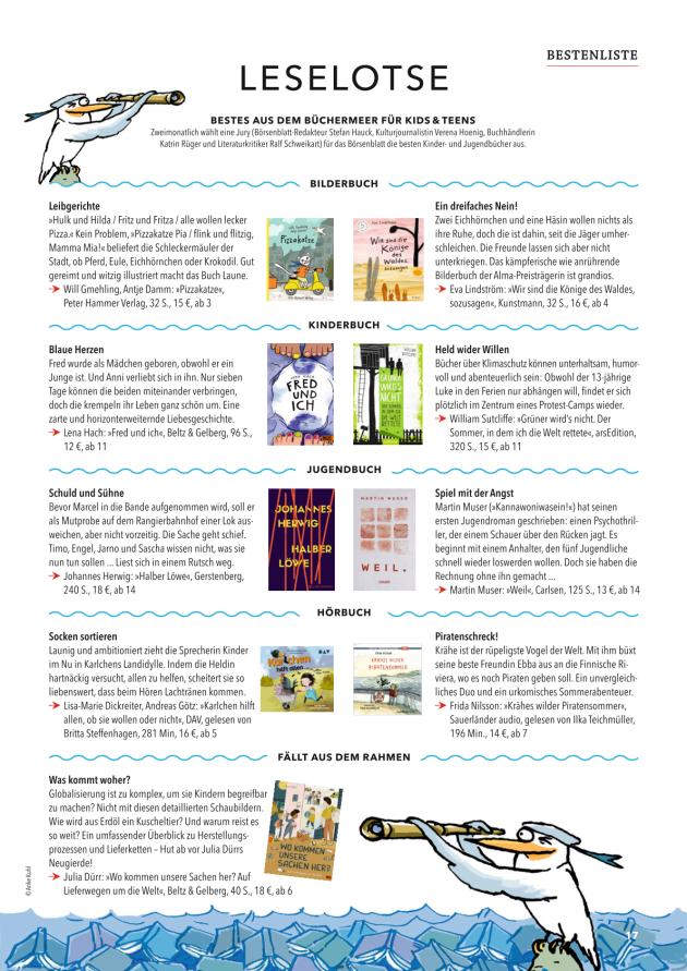Etwa 8000 Novitäten für Kinder und Jugendliche kommen jedes Jahr auf den Markt. Für Orientierung sorgt der Börsenblatt-Leselotse, der alle zwei Monate erscheint. Hier können Sie alle 6 Ausgaben eines Jahres zusammen mit einem Klick herunterladen.