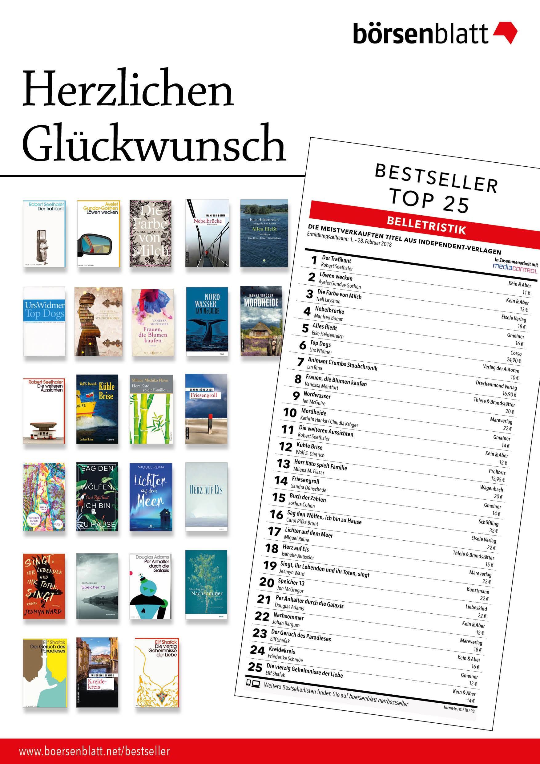 Welche Belletristik-Titel aus unabhängigen Verlagen sich im Vormonat am besten verkauft haben, das können Sie ab sofort hier auf boersenblatt.net einsehen. Mehr Sichtbarkeit für das vielfältige und spannende Feld der Independents, das erhofft sich die Redaktion von der neuen Monatsliste. Die Erstellungskriterien für das Verkaufsranking finden Sie HIER. Und drei interessante Indie-Titel vorstellen möchten wir Ihnen untenstehend: