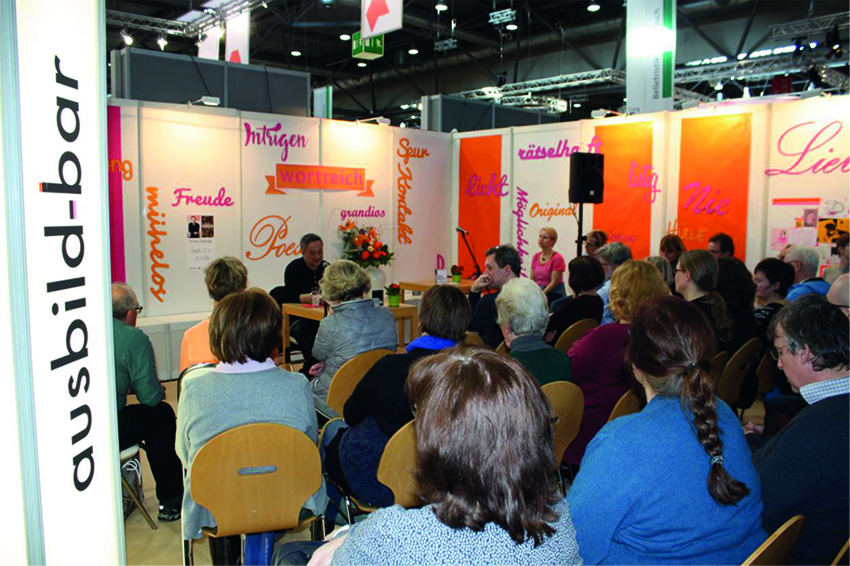 Die Auszubildenden organisieren selbständig in Zusammenarbeit mit verschiedenen Verlagen Autorenlesungen über vier Messetage. Dabei reicht das Spektrum der Veranstaltungen vom Krimi zum Kinderbuch, vom Poetryslam zur Lesung mit Illustration. Gestaltet wird der Stand von den Schülern der Fachoberschule Gestaltung der Gutenbergschule.