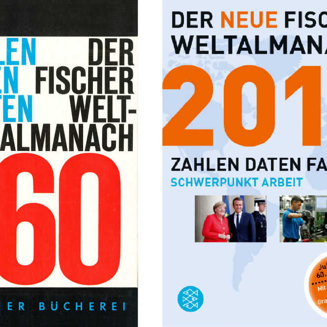 Der "Fischer Weltalmanach 1960" erschien im November 1959 in der "Fischer Bücherei", aus der später der Fischer Taschenbuch Verlag wurde. 1952 hatte Fischer mit der Produktion von Taschenbüchern begonnen, Sachbuchreihen wie die berühmte "Fischer Weltgeschichte" mit ihrem charakteristischen Schwarz-Weiß-Design, das "Fischer Lexikon" und eben der Weltalmanach standen für einen neuen Umgang mit Wissen und Bildung und entwickelten sich zu prägenden Marken im deutschsprachigen Buchmarkt. Der Fischer Weltalmanach wurde in den vergangenen Jahrzehnten konzeptionell immer wieder erweitert und modernisiert − durch ausführliche Schwerpunktthemen, durch den Druck in Farbe, durch die Ergänzung eines umfangreichen Internet-Angebots sowie durch eine Parallelausgabe mit CD-ROM. Die Website zum Fischer-Weltalmanach (www.weltalmanach.de) wird noch bis Anfang September 2018 online sein.