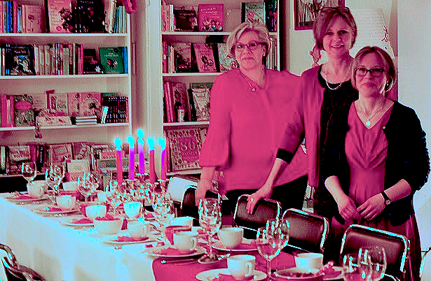 Rote Kerzen stecken in dreiarmigen Leuchtern und ihr Schein spiegelt sich im Porzellan und dem glänzenden Metall der Kerzenleuchter und des Bestecks. Die Bücherstube am Rathaus in Schortens hat Platz gemacht für eine lange, festlich geschmückte Tafel. Rote Servietten liegen auf den Tellern, auf jeder von ihnen eine Mon-Cheri-Praline in rotglänzendem Zellophanpapier. Sogar die Inhaberin Katrin Behrendt und ihre Mitarbeiterinnen Corinna Rothe und Kirstin Witt haben sich ganz in Rot gekleidet.