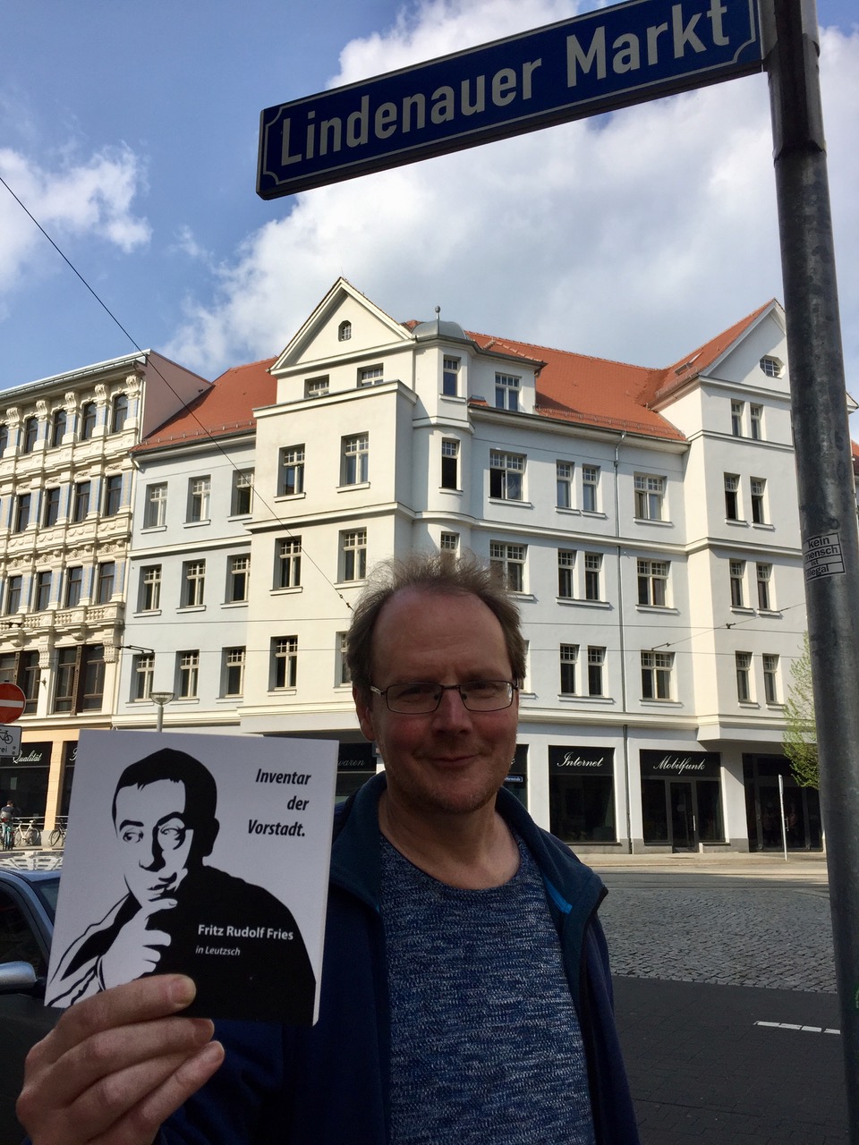Ansgar Weber ist ein Fan literarischer Topologien der Region, egal, ob es sich um Wolfgang Hilbigs Meuselwitz oder Guntram Vespers Frohburg handelt. Der Schriftsteller Fritz Rudolf Fries (1935−2014) lebte von 1942 bis 1960 im Leipziger Stadtteil Leutzsch – in vielen Texten, vom ersten im Westen veröffentlichten Roman "Der Weg nach Oobliadooh" (1966) bis hin zu den späten Werken, haben Leutzscher Begebenheiten, Orte und Personen, ihre Spuren hinterlassen. Im Herbst 2015 zeigte Weber eine Fritz Rudolf Fries gewidmete Ausstellung in seiner Buchhandlung – und organisierte einen ungewöhnlichen Stadtteilspaziergang mit drei Stimmen und einem Saxofon, eine Spurensuche, die sowohl noch vorhandene als nur mehr erinnerbare Orte des Jazz-Enthusiasten Fries in den Blick nahm. Als der "Seitenblick" 2016 den Deutschen Buchhandlungspreis erhielt, floss ein Teil des Preisgelds in das 96seitige Publikation "Inventar der Vorstadt. Fritz Rudolf Fries in Leutzsch", die noch immer über die Buchhandlung bezogen werden kann. Seither gab es Pläne für die Gründung einer literarischen Fritz-Rudolf-Fries-Gesellschaft. Der entscheidende Impuls für den Buchhändler war schließlich die Bereitschaft der weit verzweigten Familie von Fries, die Initiative mitzutragen.