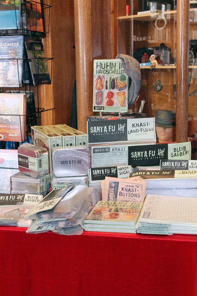Im Laden selbst gibt es viel zu sehen. Was mit ein paar Polizeiuniformen und Mützen als Deko begann, ist inzwischen zu einer stattlichen Sammlung einschlägiger Artikel angewachsen, von Handschellen in verschiedenen Ausführungen bis hin zu Helmen aus der Kaiserzeit. Passend dazu verkauft das Ehepaar krimiaffine Produkte aus dem Non-Book-Bereich, wie etwa die Tatort-Reihe von Moses, aber auch echt "Kriminelles": Aus der Justizvollzugsanstalt Hamburg-Fuhlsbüttel kommt beispielsweise das Spiel "Knast, Land, Fluss" ("wie Stadt, Land, Fluss, nur mit Kategorien wie Fluchtfahrzeug und Alibi"). In der Auslage dominieren Longseller. Bestseller könne man am Bahnhof oder in der Einkaufszone kaufen, sagt Gerdes: "Dafür braucht man keinen Krimiladen. Wir setzen auf Beratung und die gesamte Backlist. Wenn jemand sich in einen Autoren eingelesen hat, kriegt er bei uns noch mehr."