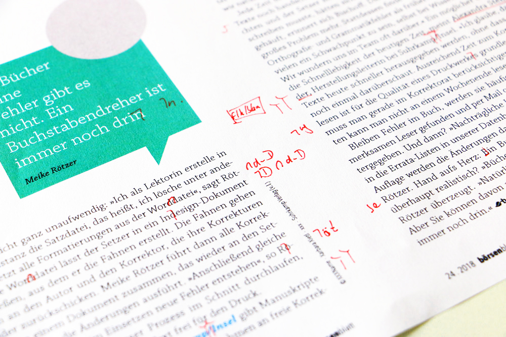 Wie Fehler in geschriebene Texte kommen, wissen wir alle: Da gibt es doch diesen Teufel, richtig? Was in der privaten Kommunikation zu verschmerzen ist, darf jedoch in Büchern nicht sein. Also muss jemand her, der die kleinen Versäumnisse gezielt ausmerzt – und das ist nicht der Lektor, auch wenn er sich akribisch mit jedem Manuskript auseinandersetzt. "Wir haben eine breitere Perspektive auf den Text", sagt Meike Rötzer, Lektorin im Berliner Indie-Verlag Matthes & Seitz. "Ich lese primär in die Tiefe; dabei entgeht mir auch mal ein Tippfehler. Wir sind ganz dringend angewiesen auf Korrektoren."