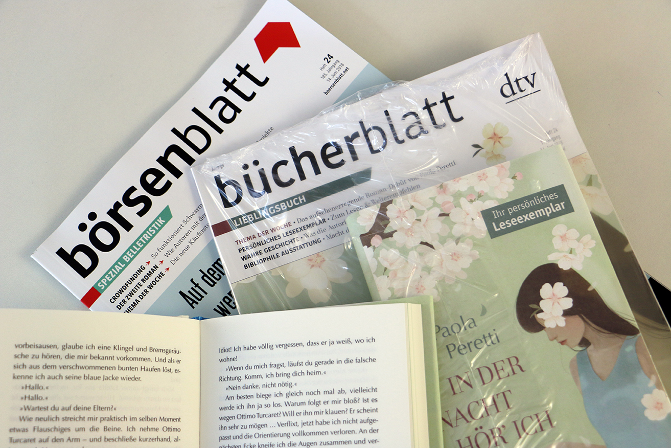 Zum ersten Mal legt ein Verlag dem kompletten Versand des Börsenblatts ein Leseexemplar bei: Theresa Bolkart, Marketing-Leiterin bei dtv, zu dieser einmaligen Aktion: "Ein Feuer zu entfachen, an dem sich die Menschen wärmen können: Das war Paola Perettis Intention, als sie ihren Schicksalsroman "In der Nacht hör´ ich die Sterne" schrieb. In der Geschichte von Mafalda, dem kleinen Mädchen, das sein Augenlicht verliert, erzählt die Autorin auchvon sich selbst. Sie hat eine Geschichte geschrieben für alle, die auf der Suche sind nach etwas Bleibenden in dieser sich immer schneller drehenden Welt. Wir freuen uns über eine außergewöhnliche Aktion für dieses besondere Buch! Wir sind sicher, dass wir eine große Leserschaft im Handel für dieses berührende Buch begeistern werden und freuen uns jetzt schon auf den Austausch und die Gespräche dazu."