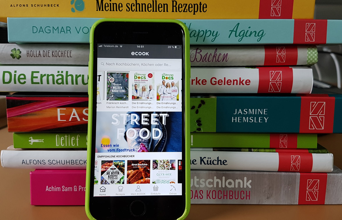 Ecook ist seit kurzem in einer Version für den deutschsprachigen Raum im App Store von Apple und bei Google Play zu haben. Die App liefert Foodies und Hobbyköchen für 4,99 Euro pro Monat verlagsübergreifend Zugang zu Originalrezepten aus ausgewählten Kochbüchern, mit Rezeptsuche über alle Titel hinweg. Dazu gibt es Extras wie Videos zu Kochtechniken, automatisch generierte Einkaufslisten und einen Mahlzeitenplaner. Der erste Abo-Monat ist kostenlos. Nutzer können die digitalen Kochbücher natürlich auch kaufen.