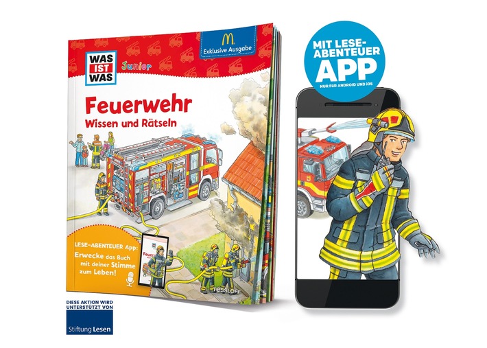 Das Burger-Unternehmen kündigt die McDonald's Lese-Abenteuer App in einer Presseinformation als erste Vorlese-App mit Spracherkennung an. Die App und eine Sonderedition von "WAS IST WAS Junior Feuerwehr − Wissen und Rätseln" wurden in Kooperation mit dem Tessloff Verlag und mit Unterstützung der Stiftung Lesen exklusiv für das Happy Meal entwickelt. Die kostenlose App ist ab sofort im Apple Store und bei Google Play verfügbar.