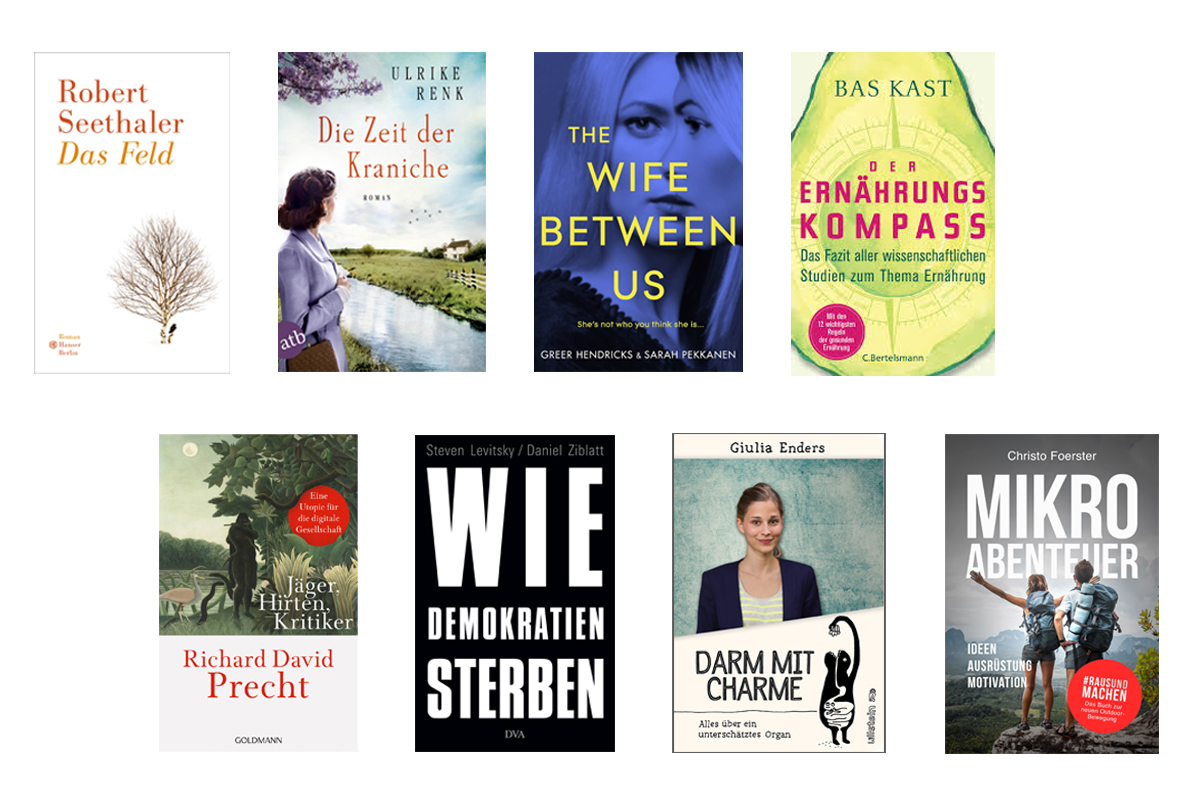 Robert Seethalers Roman "Das Feld" (Hanser Berlin) startete in Kalenderwoche 22 auf Platz 6. Schon eine Liste später setzte er sich vor Frank Schätzing ("Die Tyrannei des Schmetterlings", Kiepenheuer & Witsch) – und bleibt dort: Die aktuelle Woche mit eingerechnet kommt er auf sechs Nummer 1-Platzierungen; Jojo Moyes ("Mein Herz in zwei Welten", Wunderlich), Frank Schätzing und Ferdinand von Schirach ("Strafe", Luchterhand) standen fünf Mal auf Rang 1.