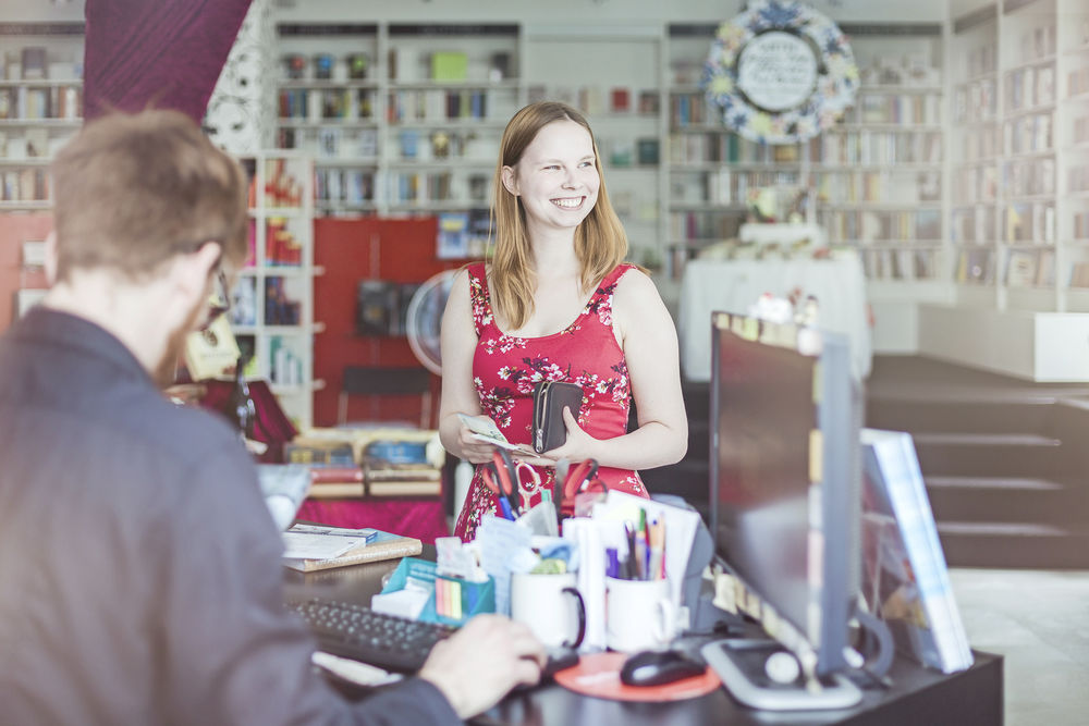 Spätestens im zweiten Jahr können die Auszubildenden dann Verantwortung übernehmen, werden dabei von der Filialleiterin oder vom Filialleiter unterstützt. "Jeder bekommt eine eigene kleine Warengruppe zur Disposition, weil man am besten durch Erfahrungen lernt", erklärt Heymann-Rienau. "Die Verkaufszahlen der 'eigenen' Warengruppe werden regelmäßig besprochen und die Auszubildenden bekommen Hinweise, welche Titel, Autoren, Verlage sie im Blick haben und wann sie Bücher bestellen sollten."