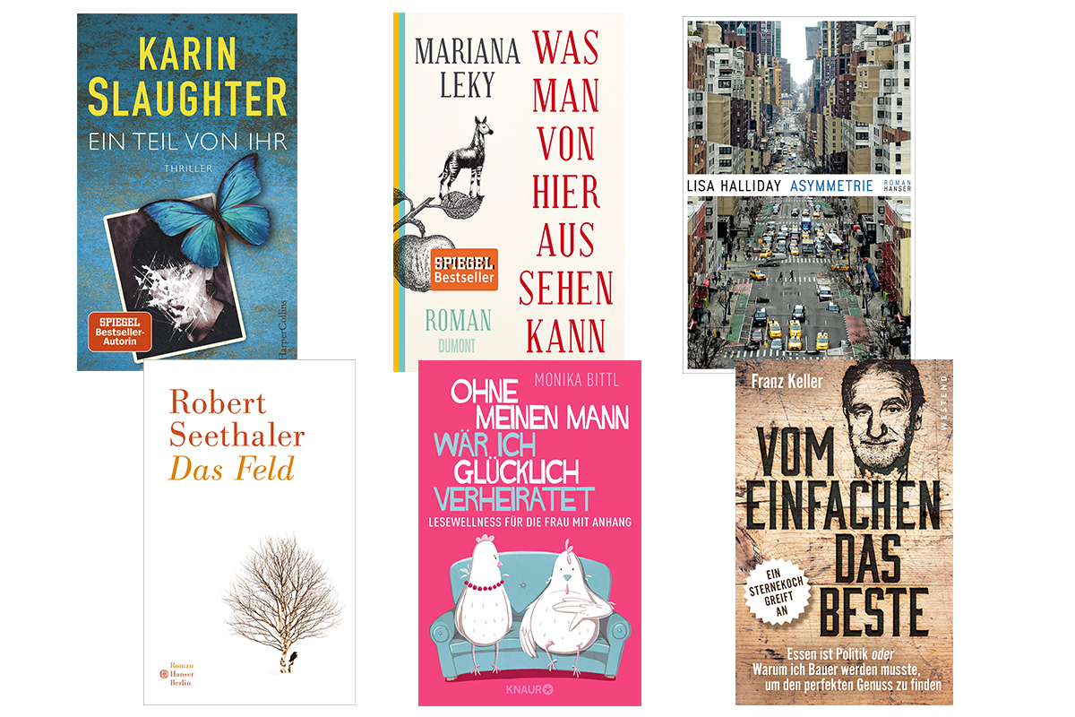 Robert Seethaler ("Das Feld", Hanser Berlin) macht in den Hardcover-Charts an gleicher Stelle weiter wie in den Vorwochen – auf Rang 1. Dabei ist auf den Plätzen hinter ihm gerade einiges los: Mariana Leky, mit "Was man von hier aus sehen kann" zuletzt auf Rang 8 zu finden, platziert sich diesmal auf Rang 2 – vor Frank Schätzing. Er steigt ab auf Rang 3 ("Die Tyrannei des Schmetterlings"; Kiepenheuer & Witsch).