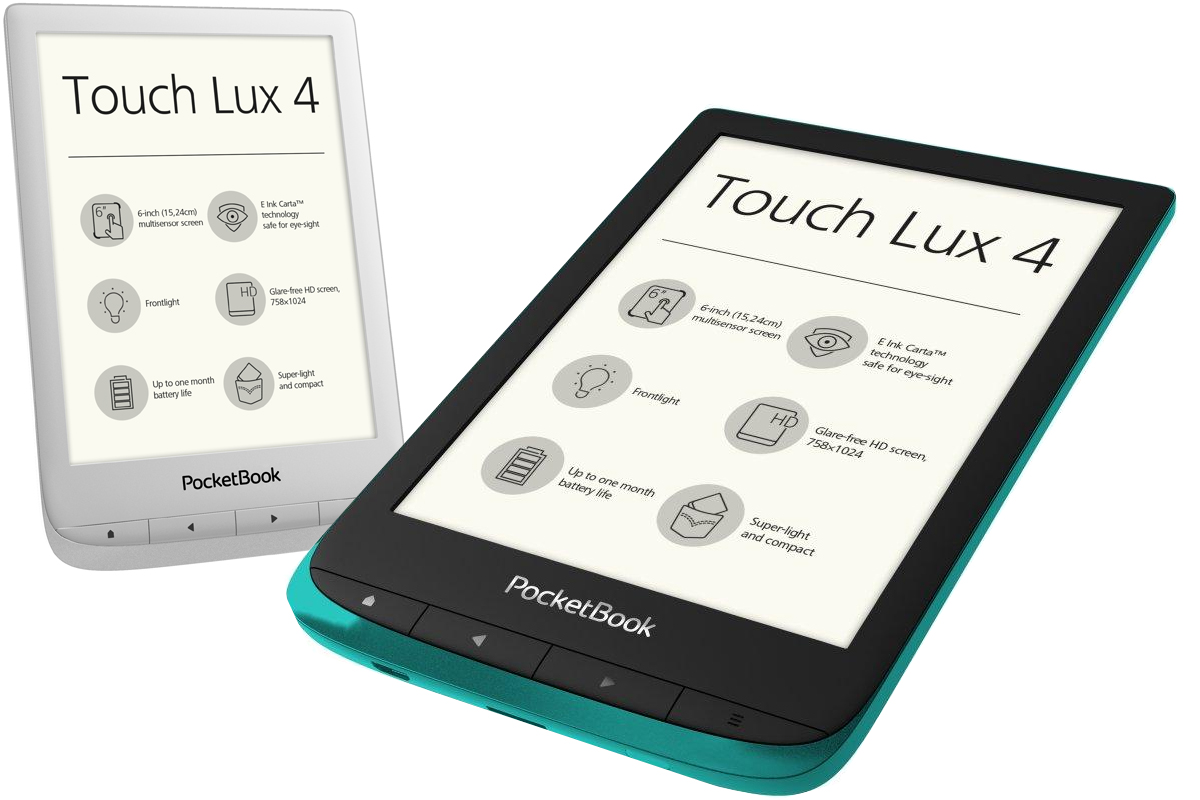 Bei der Neuauflage des Touch Lux 4 bietet PocketBook erstmals drei Farben bei einem Neugerät zur Auswahl – neben Schwarz und Silber auch die Farbe "Emerald", ein matt glänzendes Smaragdgrün (passend zum Markenauftritt des Unternehmens). PocketBook präsentiert den Nachfolger seines bislang erfolgreichsten Modells zudem "in neuem, leichtem und handlichem Produktdesign mit verdoppeltem Arbeitsspeicher und Sleep-Cover-Funktion", wie das Unternehmen mitteilt. Damit wertet PocketBook den Touch Lux deutlich auf, der bislang als günstigstes Modell der PocketBook-Reihe konzipiert war und nun unter die Kategorie "Premiumreader" fällt.