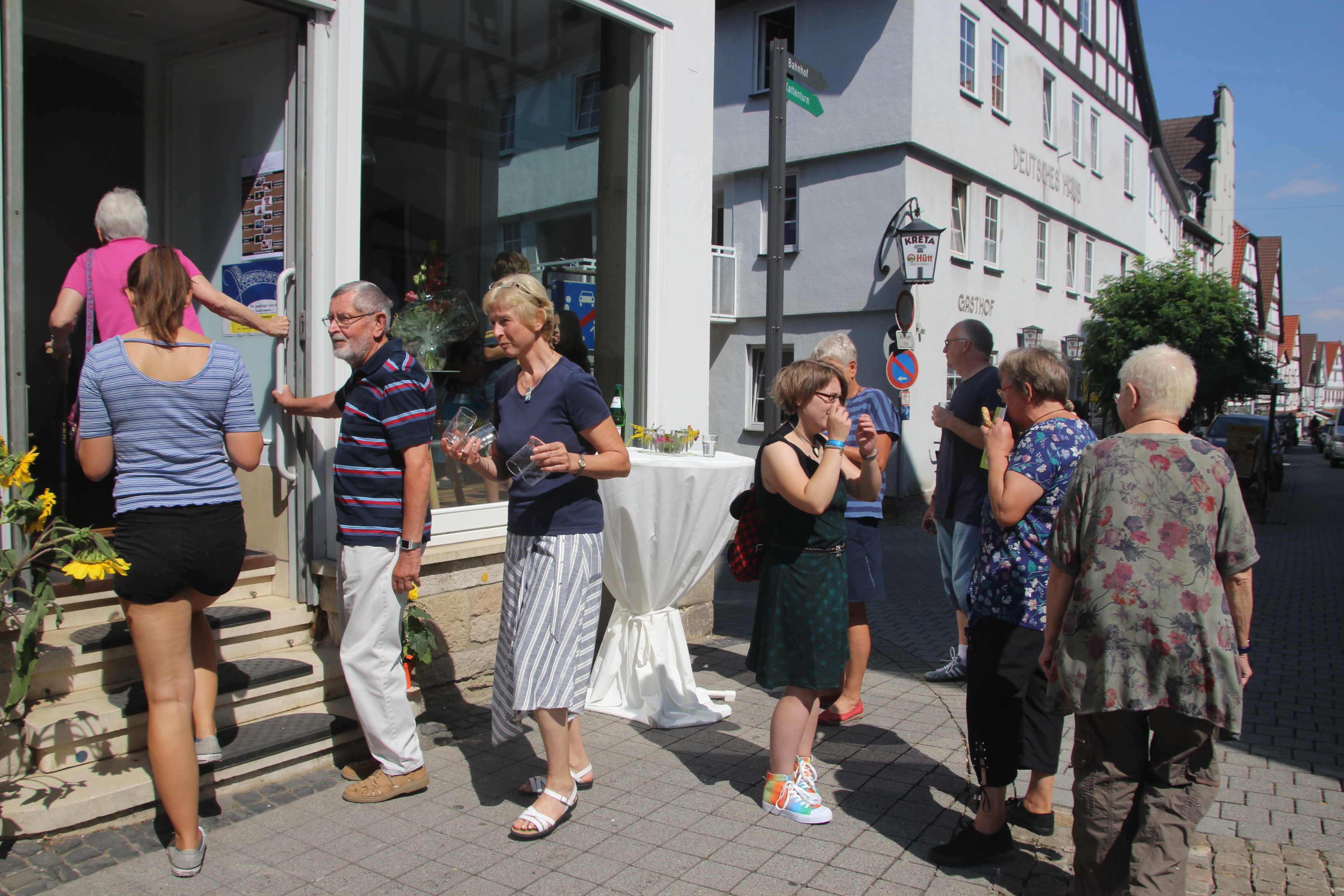 Am Eröffnungstag von Mander+, "dem neuen Raum für Menschen und Bücher", kamen am 18. August mindestens 150 Gäste, "es war ein ständiges Kommen und Gehen", freut sich Inhaberin Elke Müldner. "Wir hatten seit geraumer Zeit überlegt, wie wir unseren Wunsch nach mehr Präsentation, nach einem Ort der Begegnung umsetzen können", sagt Müldner gegenüber boersenblatt.net. Da der aktuelle Standort in der Schützeberger Straße 29 in der 12.000-Einwohner-Gemeinde Wolfhagen (die Kernstadt hat rund 8.000 Bewohner) topp sei, sei man auf die Idee gekommen, eine neue Fläche in der Nähe des Ladens zu suchen. Müldner wurde fündig, als direkt neben ihrem Geschäft in einem Fachwerkhaus eine 55 Quadratmeter große Fläche frei wurde, auf der früher ein Sonnenstudio untergebracht war.