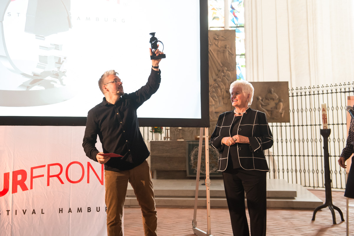 Schirmherrin Christine Kühne, Ehefrau von Harbour Front-Hauptförderer Klaus-Michael Kühne, und Katrin Hörnlein, Ressortleiterin "Junge Leser" DIE ZEIT, überreichten die Auszeichnung am 13. September in der Hamburger Hauptkirche St. Katharinen in Anwesenheit zahlreicher Gäste, darunter viele Hamburger Schülerinnen und Schüler, wie die Verlagsgruppe Oetinger berichtet. Bei der Preisverleihung stellte Martin Baltscheit einige seiner beliebtesten Bücher vor, erzählte von seinem kreativen Leben und Schaffen − und machte Lust auf mehr.