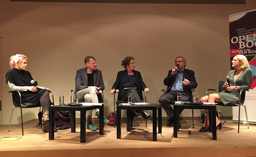 Unter dem Motto „Climate Change – Wie sieht die Buchkultur von morgen aus?“ diskutierten im Rahmen des Frankfurter Literaturfestivals Open Books die Verleger Christoph Links (Chr. Links Verlag), Daniela Seel (Kookbooks) und Axel von Ernst (Lilienfeld) mit Kyra Dreher vom Börsenverein über Verlagsförderung und Literaturpolitik in Deutschland. Die Insolvenz von Stroemfeld, die Krise bei Klöpfer & Meyer, die Erhöhung des Portos für Büchersendungen durch die Deutsche Post, dazu eine beschlossene Änderung des Urheberrechts in Bildung und Wissenschaft und eine deutsche Monopolkommission, die die Buchpreisbindung für überflüssig hält - es läuft gerade nicht so gut für kleinere unabhängige Verlage, die unter drei Millionen Jahresumsatz machen – und das ist das Gros der rund 1700 im Börsenverein organisierten Firmen. Das viele noch deutlich unter dieser Marke rangieren, ist bekannt. Über eine Durchschnittsrendite von 1,6 Prozent lacht man in anderen Branchen. Wieso ist der Wind gerade jetzt rauer geworden, hat sich das Klima gewandelt?