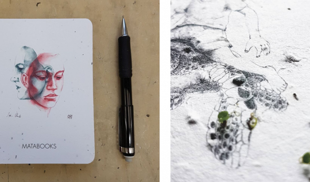 Matabooks aus Leipzig (www.matabooks.de) belegte im Jury-Ranking Platz 3. Das Öko-Start-up überzeugte die Jury mit seinen einmaligen Notizbüchern. Einmalig deshalb, weil sie aus Graspapier hergestellt wurden – die Notizbücher lassen sich problemlos kompostieren und zum Blühen bringen (das Papier enthält Samen von Wildblumen; Foto rechts). Auch die Druckfarbe, der Kleber und das Gummiband sind aus ökologischen Rohstoffen (DIN A5, 80 Seiten, UVP 16,90 Euro).