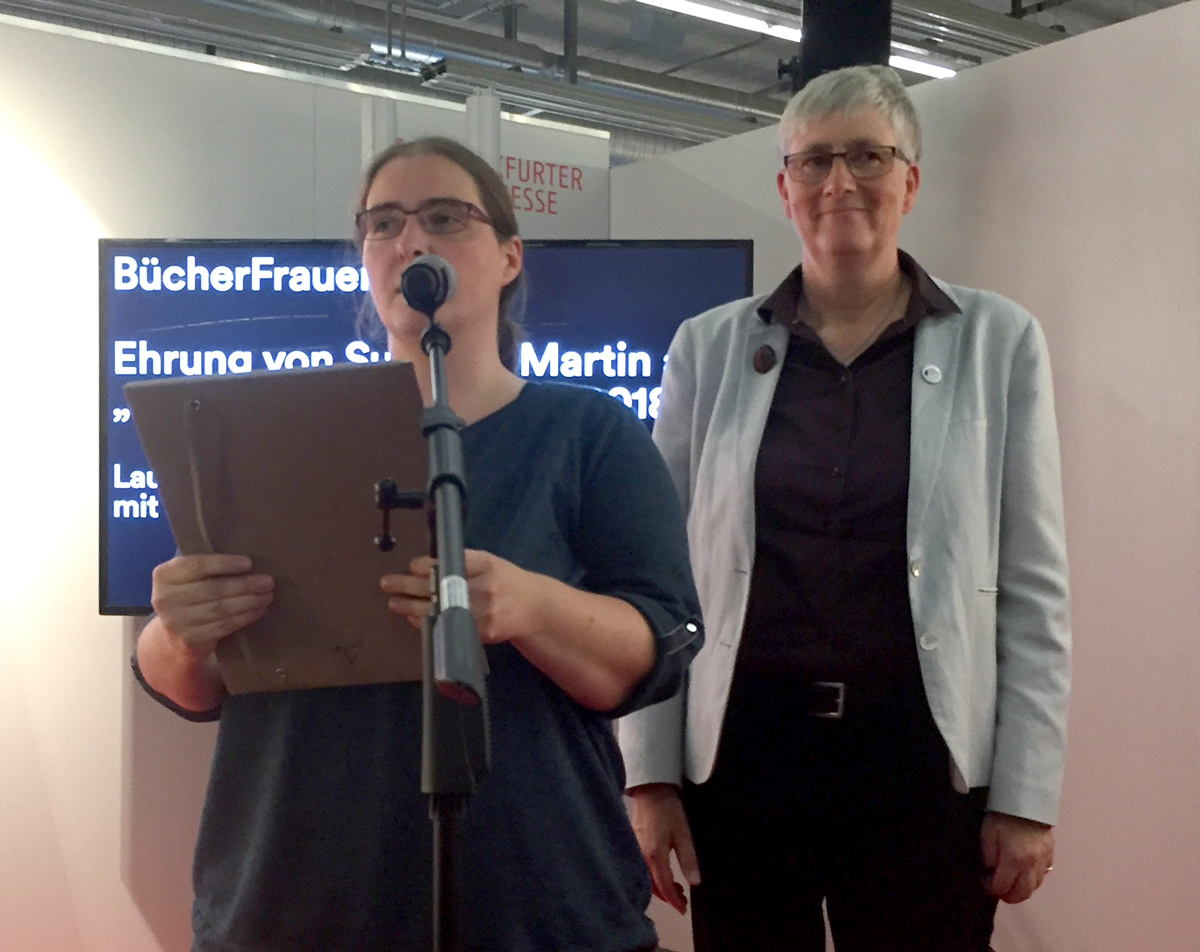 So, wie Rausch die BücherFrau des Jahres 2018 charakterisiert, haben sie wohl viele kennengelernt – und viele kamen gestern auch zur Preisverleihung. Darunter Verlegerin Ulrika Helmer, Kollege Dieter Dausien (Buchhandlung am Freiheitsplatz, Hanau) und Betriebsberater Joachim Merzbach. Hier ist die Dankesrede von Susanne Martin, im Wortlaut: