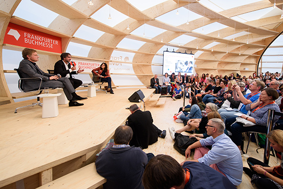 Mit Yücel auf dem Podium: Alexander Skipis, Hauptgeschäftsführer des Börsenvereins, der sich seit Jahren mit der Kampagne "Für das Wort und die Freiheit" für verfolgte Autoren stark macht und auch die Aktion #FreeDeniz unterstützt hat. "Jedes einzelne Schicksal zählt", machte Skipis deutlich: "Von inhaftierten Autoren hören wir immer wieder: Vergesst uns nicht, erinnert an uns."