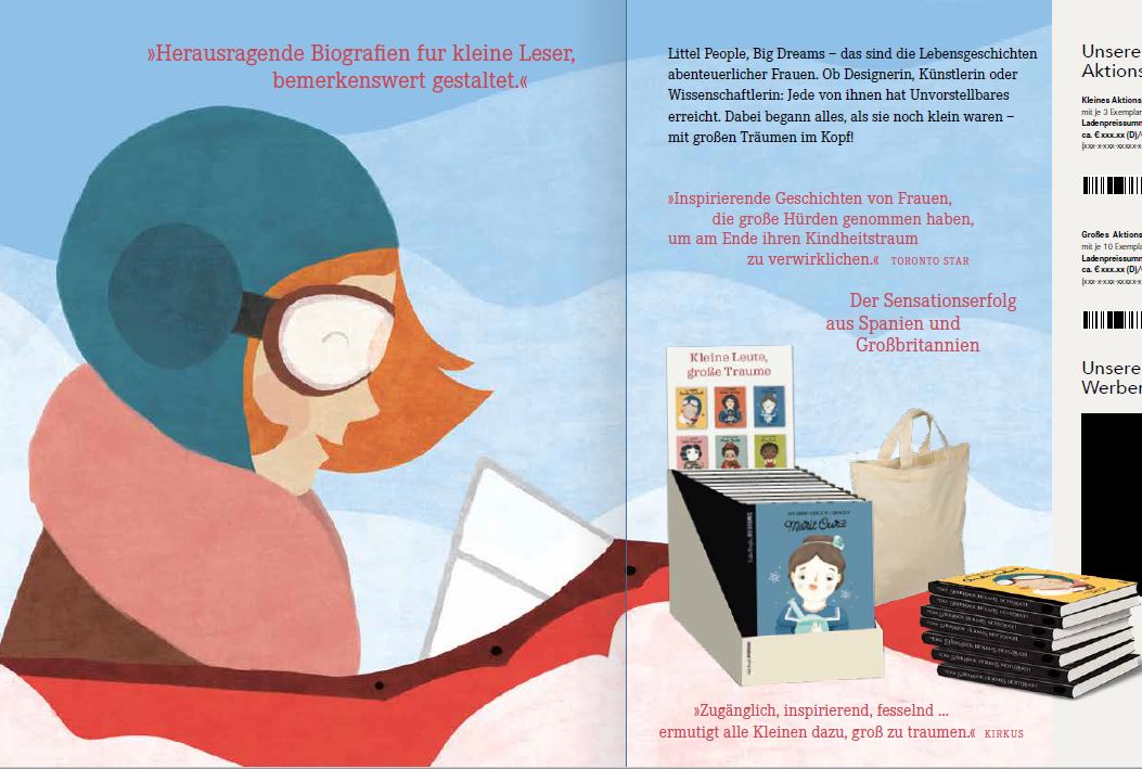 Landgrebe: Es beschäftigt uns alle im Moment, wie Kinder auch weibliche Vorbilder finden und wie die Position von Frauen in der Gesellschaft gesehen wird. Zu dieser Diskussion leisten die Bücher einen kleinen Beitrag für junge Menschen. Als ich sie zum ersten Mal sah, war ich gleich davon überzeugt, dass sie in Deutschland gut aufgenommen werden müssten, natürlich insbesondere auch, weil die Illustrationen sehr stark sind. Meine eigenen Kinder mögen Sie schon jetzt sehr gern, in der englischen Fassung. Sie entsprechen aber auch dem Profil des Insel Verlags, der schon immer biografische Titel, gerade auch über Frauen veröffentlicht hat, und wie gesagt, ja auch in Bezug zum Kinderbuch nicht ohne Hintergrund ist.