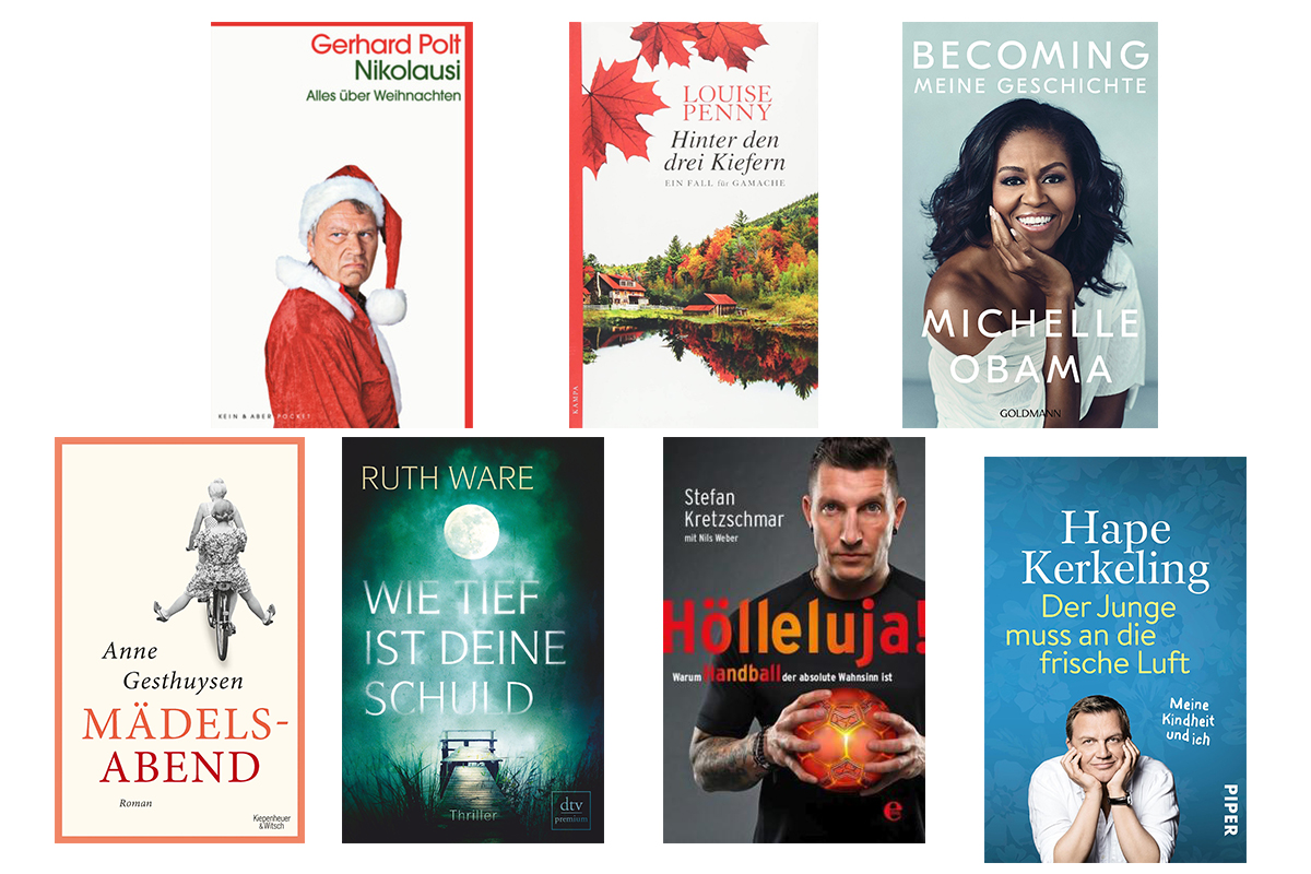 An der Spitze der Hardcover-Charts tut sich wenig – Michelle Obama hält wie erwartet Kurs ("Becoming", Goldmann; Platz 1), ist mir ihrem Erinnerungsbuch erneut drei Mal vertreten (US-Version auf Platz 11; UK-Version auf Platz 18). Dazu fällt noch ein anderes Erinnerungsbuch auf: Drogerieunternehmer Dirk Roßmann steigt acht Plätze auf – rangiert diesmal auf Position 12 („... dann bin ich auf den Baum geklettert!“, Ariston).