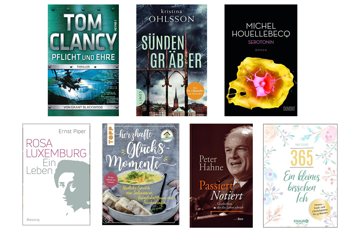 Gleich zwei Spannungstitel haben Premiere: "Sündengräber" (Limes) von Kristina Ohlsson auf Platz 15 und "Pflicht und Ehre" (Heyne) von Tom Clancy / Grant Blackwood auf Platz 18. Ohlsson lässt hier ihre Friderika Bergman-Serie ausklingen (Auflage der beiden Vorgängerbände: 180.000 Exemplare), Tom Clancy / Grant Blackwood schicken bereits zum 19. Mal Jack Ryan los.