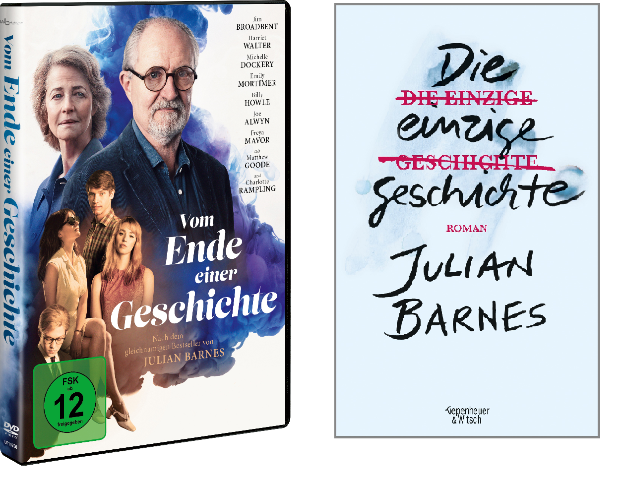 Eins von drei Julian-Barnes-Paketen: Enthalten sind jeweils eine DVD "Vom Ende einer Geschichte" (Panorama Entertainment) und ein Roman "Die einzige Geschichte" (KiWi).