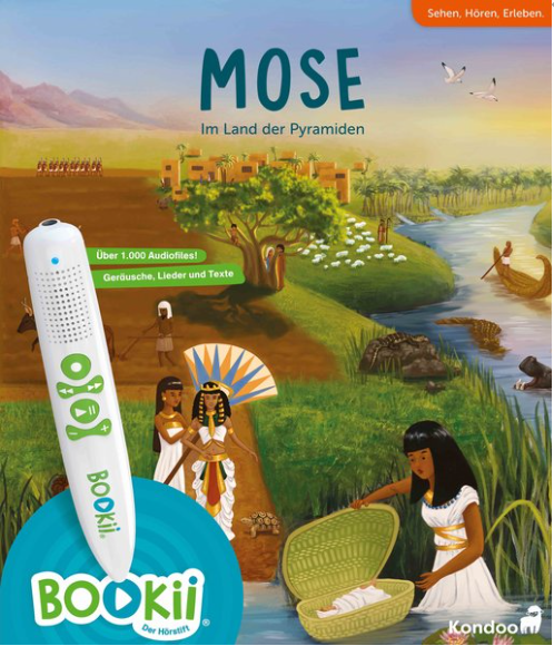 Die BOOKii-Hörstift-Technologie ermögliche es Kindern, "neben der biblischen Geschichte Moses, auch die Tier-, Pflanzen- und Menschenwelt der damaligen Zeit zu erforschen", so Marcus Witzig, Geschäftsführer des Kondoo Verlags.
