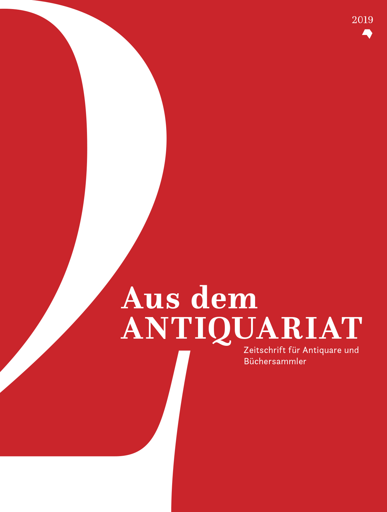 Besprochen wird ferner der Gemeinschaftskatalog der Antiquare 2019. Es gibt außerdem, wie in jeder Ausgabe, einen Terminkalender (Messen, Auktionen, Ausstellungen) sowie eine Übersicht über neue Antiquariatskataloge und -listen.