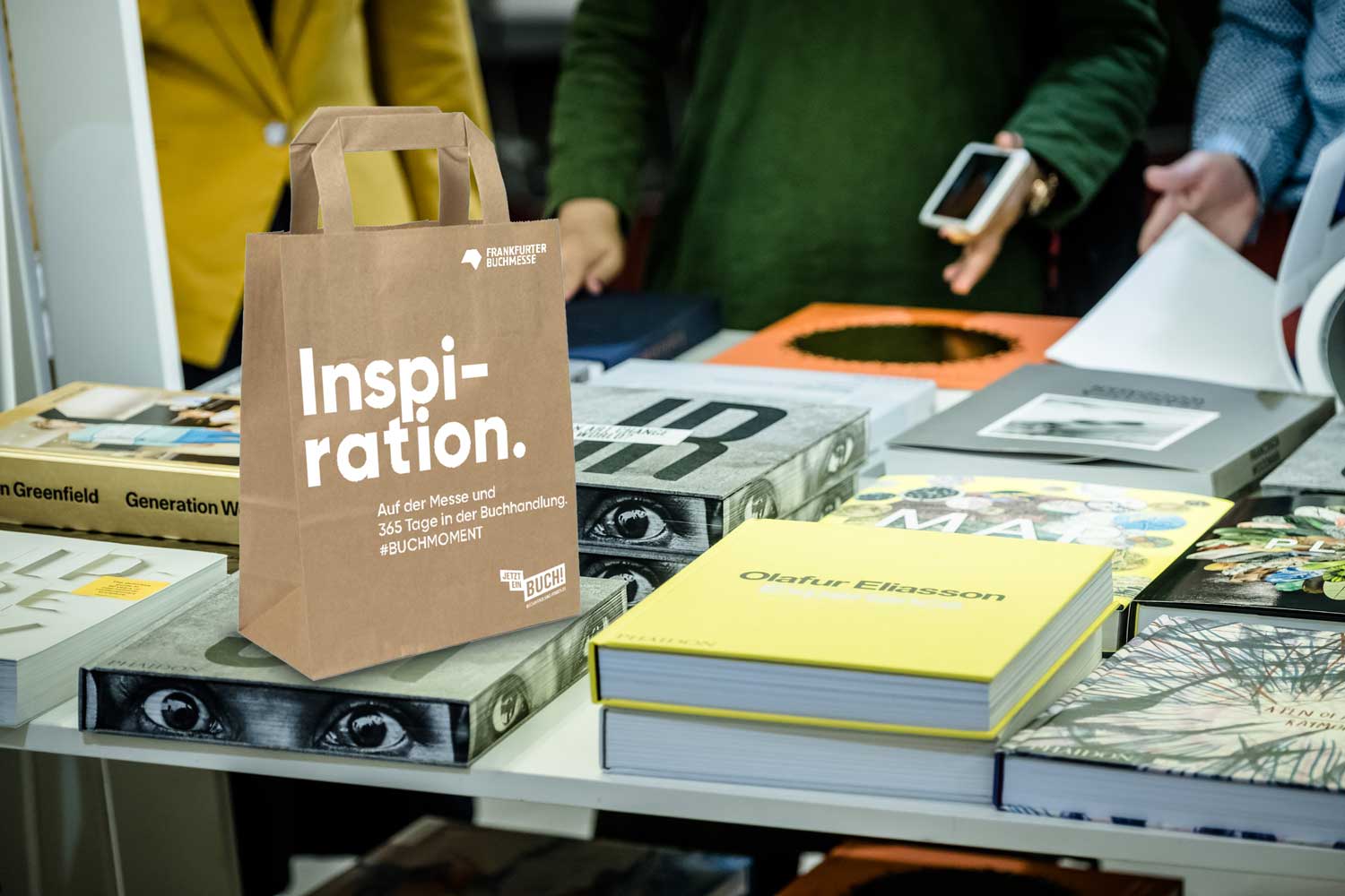 - Flankiert wird der Buchverkauf am Wochenende durch die messeeigene Kampagne "Inspiration. #BUCHMOMENT auf der Messe und 365 Tage im Buchhandel". Sie wird großflächig vor und auf dem Messegelände präsent sein und greift den Claim der weiterentwickelten "Jetzt ein Buch!"-Initiative des Börsenvereins auf (siehe Archiv).