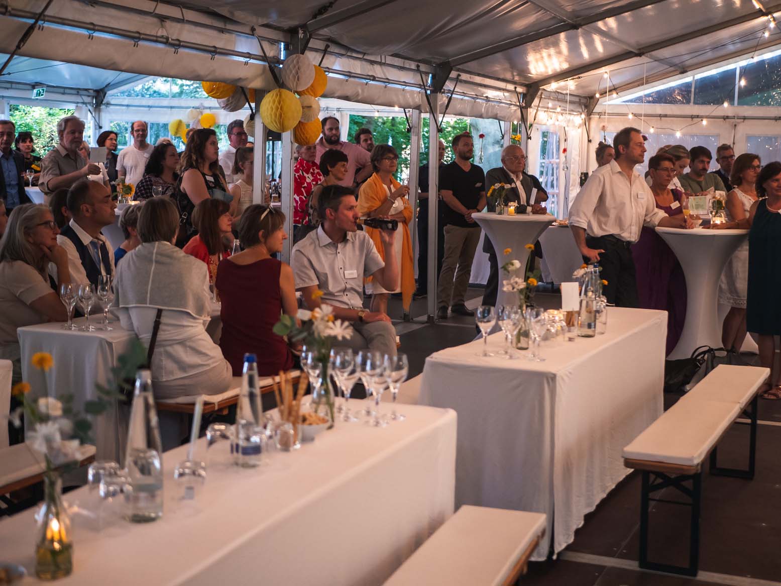 Den Abschluss des Programms bildete Stefan von der Lahr, C.H.Beck-Lektor für Altertumswissenschaften, der aus seinem ebenfalls bei C.H.Beck erschienenen Kriminalroman "Hochamt in Neapel" las. Nach Speis' und Trank für Geist und Magen sorgte das Monaco Swing Trio für beschwingte Atmosphäre bis in die dunkle Nacht.