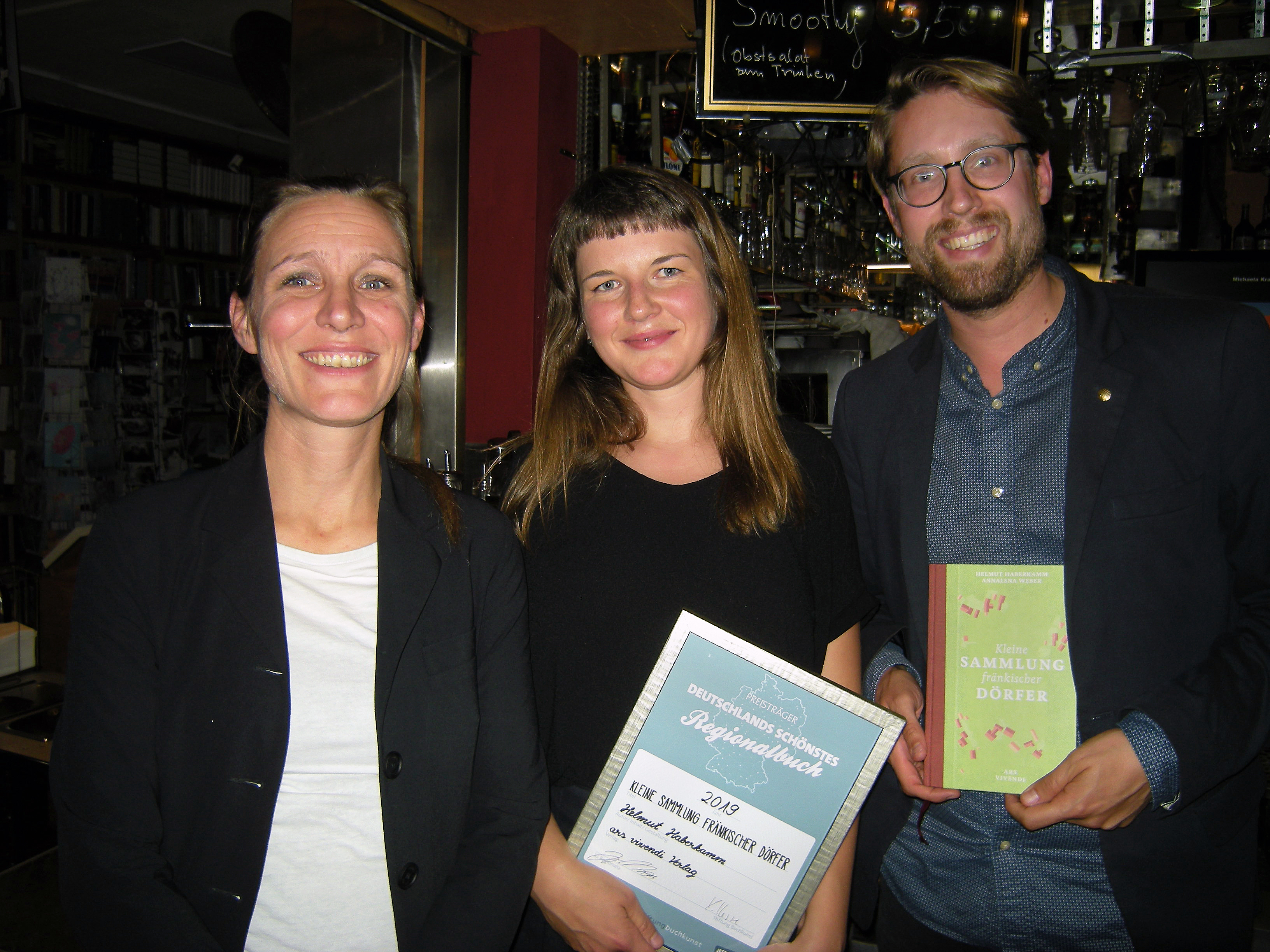 Buchdesignerin Annalena Weber und ihre Lektorin von ars vivendi, Magdalena Haid, die für die Veranstaltung aus Hamburg und Cadolzburg angereist waren, freuten sich sehr über die Auszeichnung. Annalena Weber hat – von der ersten Idee bis zum fertigen Buch – über sechs Jahre an dem Projekt gearbeitet und war über die Zusammenarbeit mit dem Autor Helmut Haberkamm sehr glücklich, der einen ganz eigenen Blick auf die dörflichen Strukturen gerichtet habe. Ein Ansatz, den man sich auch gut für andere ländliche Regionen vorstellen könnte. "Wir wollten das Buch unbedingt machen", erzählt Magdalena Haid, "und wir haben dafür einen ganz neuen Weg via Crowdfunding eingeschlagen. Damit konnten wir die schöne Ausstattung des Buches mitfinanzieren."