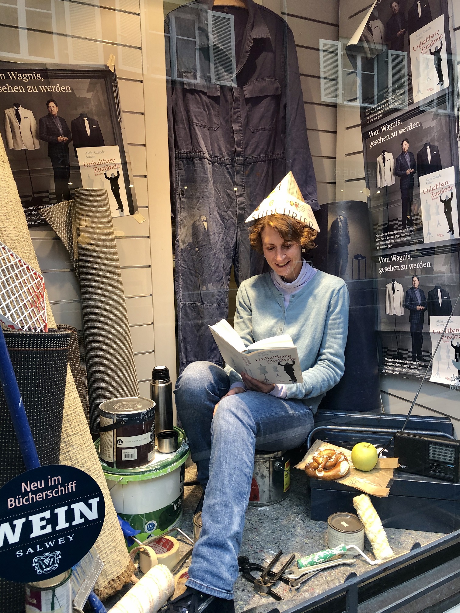 Alain Claude Sulzer erzählt in seinem Roman die Geschichte eines Schaufensterdekorateurs im Revoltejahr 1968, der sich mit Macht gegen den Zeitenwandel stemmt. Bei den Schaufensteraktionen seinen Leitern, Schneiderpuppen, Kofferradios, Pappmasken, Bademäntel und Rosen zum Einsatz gekommen, so Galiani. "Entstanden sind wunderschöne, witzige, elegante, kreative Schaufenster."
