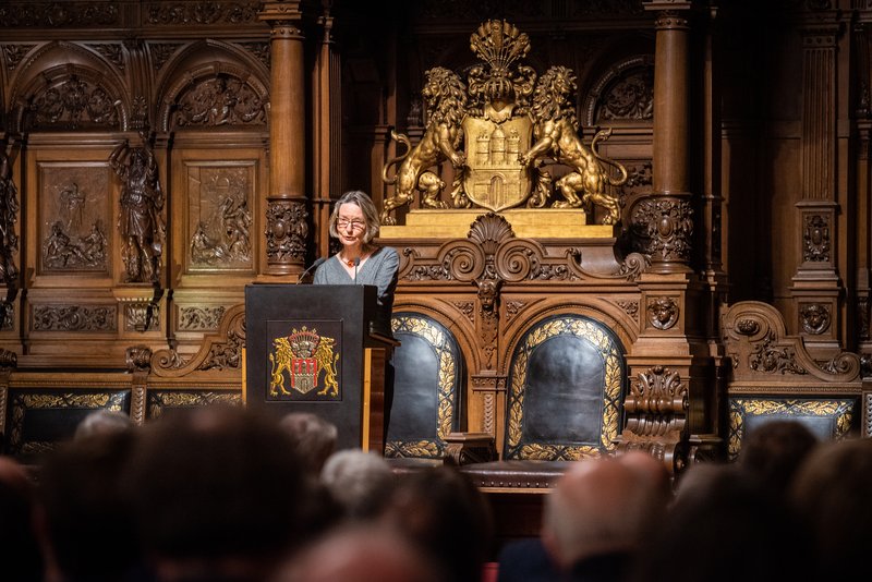 Präsidentin Carola Veit führte aus: "Seit mehr als dreißig Jahren zieht Kirsten Boie mit ihren Büchern Kinder in ihren Bann und prägt damit Ansichten und Einsichten der jungen Leserinnen und Leser. Tausende hat sie überhaupt erst zu begeisterten Lesenden gemacht. Es gelingt ihr auf einzigartige Weise, sie mit ihren Geschichten zu fesseln und ihre Fantasie zu beflügeln. Die höchste Auszeichnung unserer Stadt gilt nicht nur ihrer herausragenden Leistung als Autorin, sondern im Besonderen auch ihrem Engagement für Bildung bei Kindern und Jugendlichen. Als Schirmherrin des Buchstart-Programms setzt sie sich seit nunmehr 15 Jahren dafür ein, dass schon die ganz kleinen Kinder in unserer Stadt mit Büchern aufwachsen, Freude am Lesen und ganz nebenbei sprachliche Kompetenz entwickeln können. Ihre besondere Gabe und Schaffenskraft strahlt weit über Hamburg hinaus und macht sie so auch zur Botschafterin für unsere Stadt. Von ganzem Herzen beglückwünsche ich Kirsten Boie zur Verleihung der Ehrenbürgerinnenwürde."