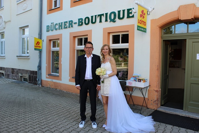 Auf 40 Quadratmetern bietet er ein allgemeines Sortiment, vor allem Krimis und Kinderbuch funktionierten sehr gut, stellt er fest. Auch das Segment "Gesundheit, Ernährung und Entspannung" komme gut an. "Dazu wird unser passendes Non-Book-Angebot mit regionalen Produkten, Kerzen, Tee, Deko und Geschenkartikeln für Körper, Geist und Seele gut angenommen", erläutert Spörl, der das Geschäft zusammen mit seiner Frau Manuela in Aushilfe betreibt. Im Herbst haben sie geheiratet – "und liebsten hätten wir das in der Buchhandlung gemacht", sagt Manuela Spörl.