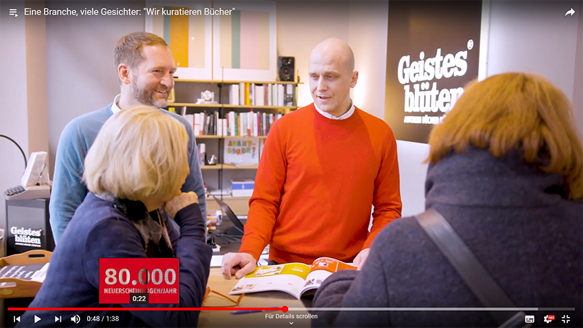 Zwei unabhängige Verleger, zwei kreative Buchhändler, eine Justiziarin - in sechs Videos zeigt der Börsenverein Menschen, die für ein vielfältiges Buchangebot sorgen und fürs Lesen begeistern.