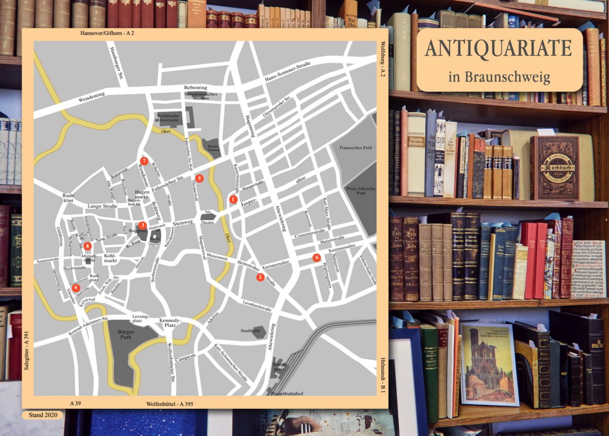 Hier findet sich ein aktuelles Faltblatt mit Standortplan und Adressen der Braunschweiger Antiquariate.