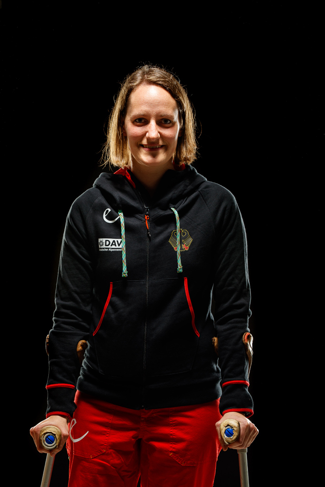 Jacqueline Fritz war 15 Jahre alt, tanzte Ballett und liebte die Bewegung, als ein Bänderriss ihr Leben verändert: Bei der Behandlung kam es zu Komplikationen, acht Jahre und diverse Behandlungen später entscheiden die Ärzte, ihren Unterschenkel zu amputieren – damit war ihr Lebenswille gebrochen. Erst als sie bei einem der vielen Reha-Aufenthalte die Berge für sich entdeckte, konnte sie neuen Mut fassen. Sie begann zu wandern und erreichte schon bald ihr erstes großes Ziel: eine Überquerung der Alpen von Garmisch-Partenkirchen nach Meran mit Krücken und ohne Prothese. Diese 350 Kilometer und 35.000 Höhenmeter markierten den Anfang für ihren Weg zur professionellen Extremsportlerin. Fünf Jahre später ist ihre Liebe zum Sport größer denn je und ihr „Brotjob“ als Grafikdesignerin rückt immer mehr in den Hintergrund. Jacqueline ist Mitglied der deutschen Paraclimbing-Nationalmannschaft, bei der WM 2019 in Briançon holte sie die Bronzemedaille für Deutschland. Sie hat die Seven Summits in den Stubaier Alpen bestiegen und im Winter 2019 das Skifahren erlernt, um in derselben Saison noch Skitouren gehen zu können.