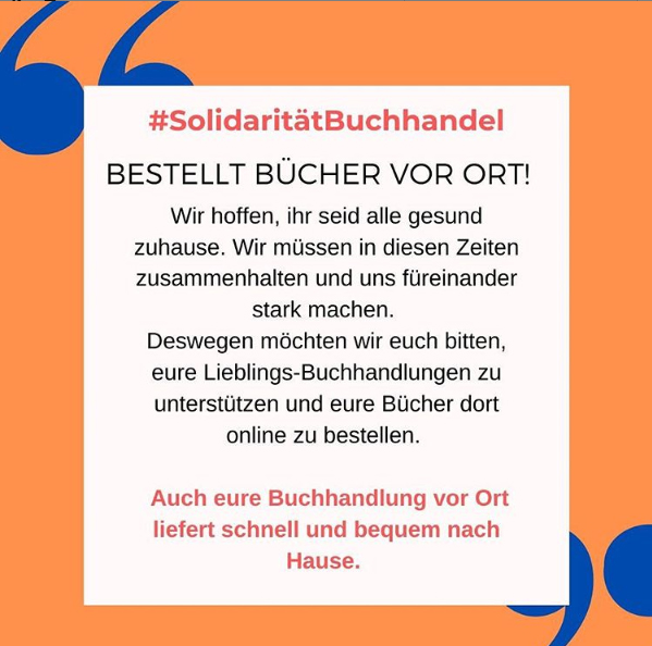 Unterstützt wird die Kampagne von zahlreichen Autor*innen der Edel Verlagsgruppe wie Anne Fleck, Birgit Schrowange, Michael Nast, Nova Meierhenrich, Fabian Kahl, Mirja Regensburg, Lucinde Hutzenlaub, Rick Goldmann, Angelina Kirsch, André und Shari Dietz, Sofia Tsakiridou, Dana Schwandt, Sarah Tschernigow, Lina Mallon, Lena Kuhlmann, Nena Schink, Torsten Woywod, Katharina Afflerbach, Bettina Hennig und Benjamin Melzer, die sich mit dem Hashtag #SolidaritätBuchhandel an ihre Fans wenden.