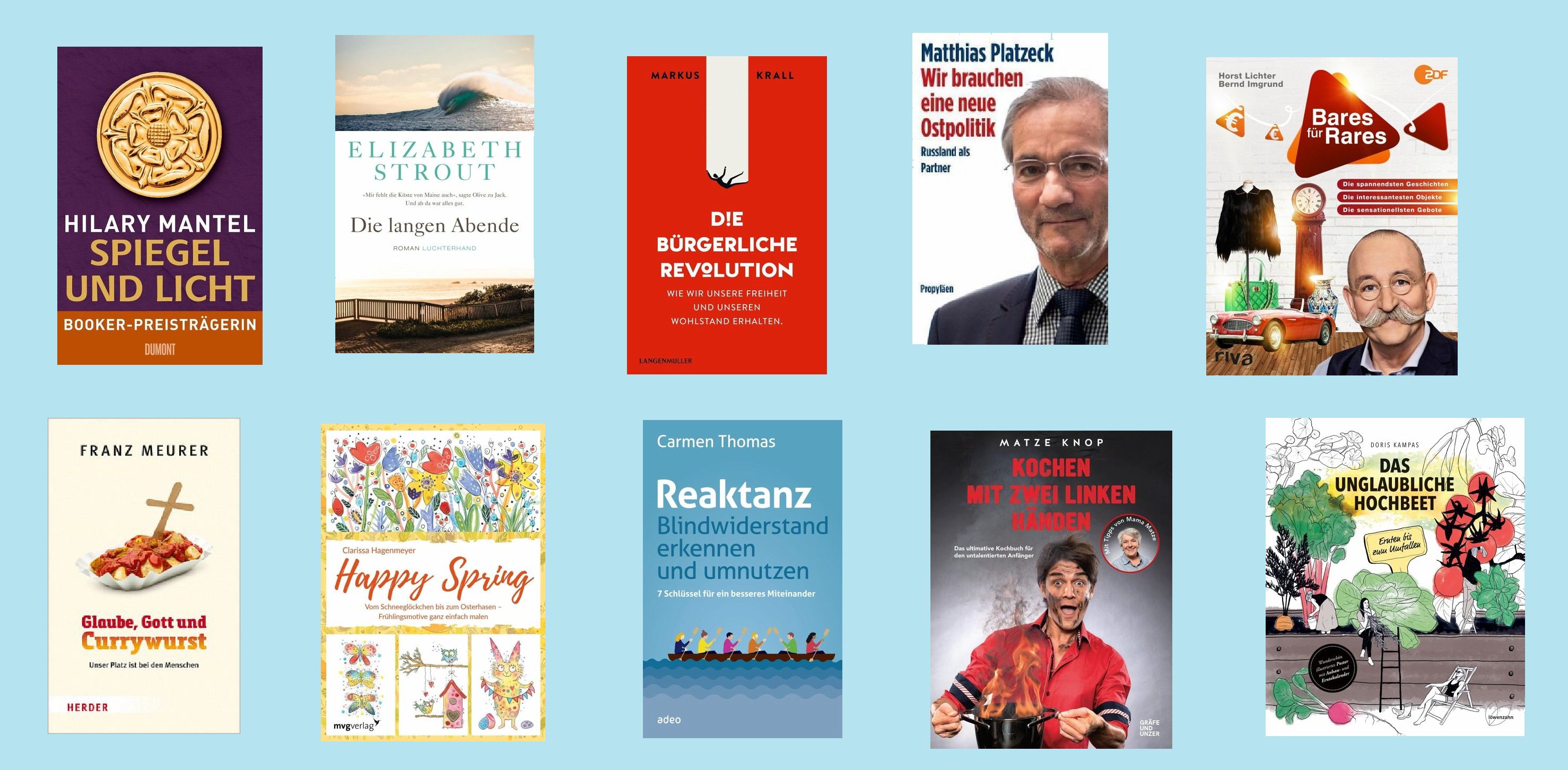 Horst Lichter moderiert seit sieben Jahren "Bares für Rares" im ZDF. Im gleichnamigen Buch bei Riva (Co-Autor ist Bernd Imgrund) schildert er die schönsten Geschichten rund um die populäre Trödelshow – der Lesestoff für Fans der Sendung startet auf Platz 18. Der sozial engagierte Kölner Pfarrer Franz Meurer erzählt in "Glaube, Gott und Currywurst" (Herder) von seinen Erfahrungen. Der Titel macht seinen Ansatz klar.