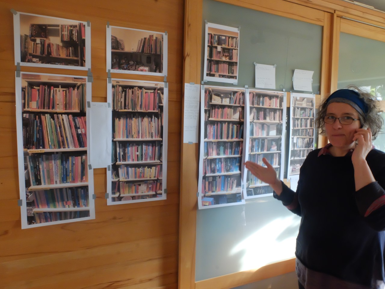 Not macht erfinderisch: Katrin Rüger hat sich zuhause Fotos der Regale ihres Buchpalasts in München an die Wand gehängt, als Ideenstütze. "Ist sehr hilfreich", meint Rüger, "so wird Beratung aus dem Home Office jetzt zum Kinderspiel ... und kein Buch geht vergessen."
