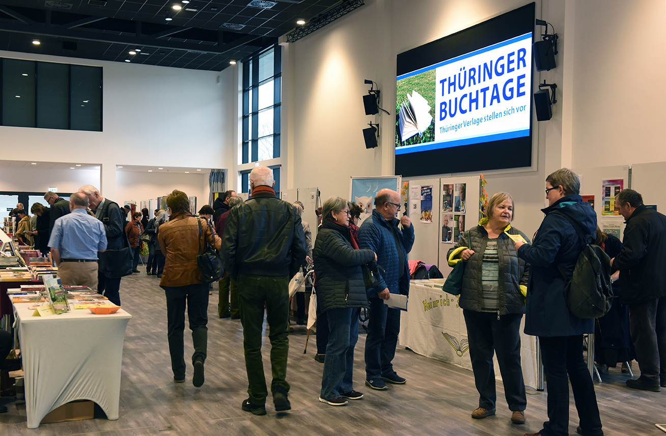 31 Thüringer Verlage stellen ihre Bücher vor und wollen einen aktuellen Überblick über die thüringische Verlagslandschaft vermitteln. Bücherfreunde können am Freitag und Samstag von 10 Uhr bis 18 Uhr durch die Bücherschau schlendern, der Eintritt ist kostenfrei. Neben der Bücherschau wird ein Rahmenprogramm mit 15 Veranstaltungen angeboten, darunter der traditionelle Illumat, der nach Wünschen der Besucher Grafiken "ausspucken" wird.