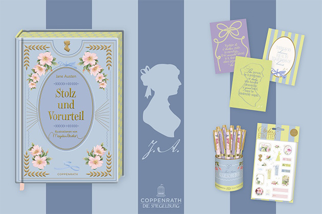 Zum Jubiläum rückt Coppenrath seine berühmte Autorin noch einmal besonders ins Rampenlicht. Mit "Mansfield Park" erscheint nun erstmals ein Titel der Reihe im englischen Original. Im Herbst folgt eine limitierte Sonderausgabe von "Stolz und Vorurteil" in neuem Design und mit kunstvollem Farbschnitt – als Sammlerstück für alle Austen-Fans.