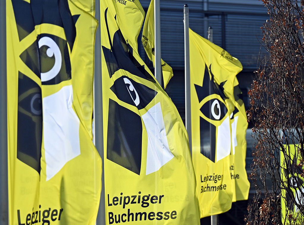 Fahnen mit dem Logo der Leipziger Buchmesse