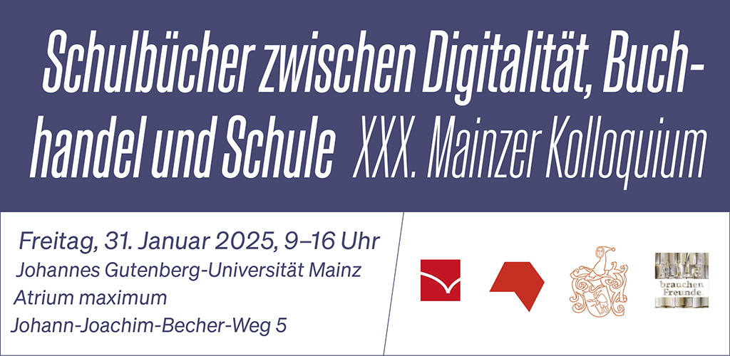 Am 31. Januar 2025 wird an der Johannes Gutenberg Universität in Mainz das 30. Mainzer Kolloquium stattfinden. Fachleute aus der Verlagswelt, dem Buchhandel, Schulen und der Wissenschaft werden dort über die neuesten Entwicklungen bei Schulbüchern sprechen.