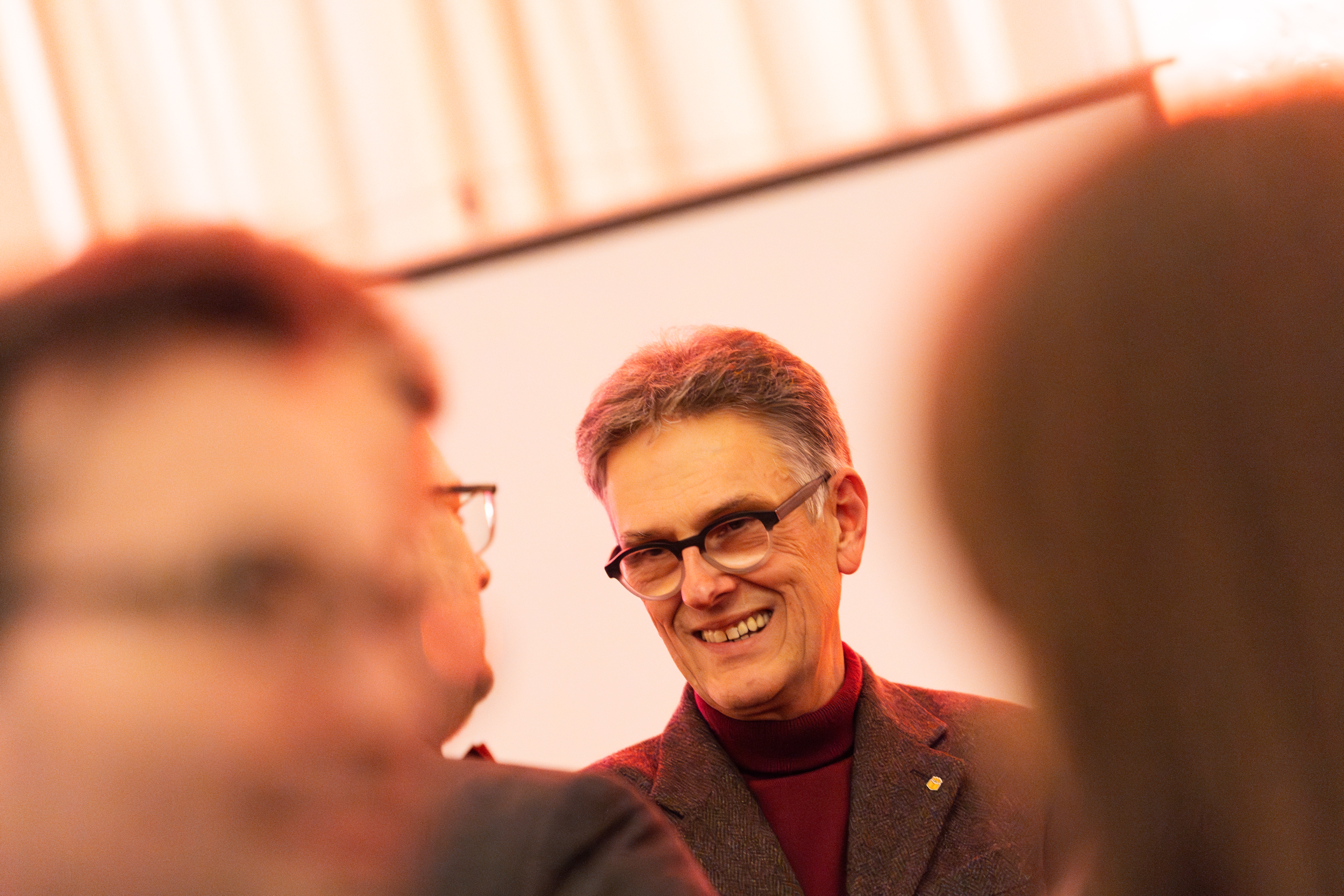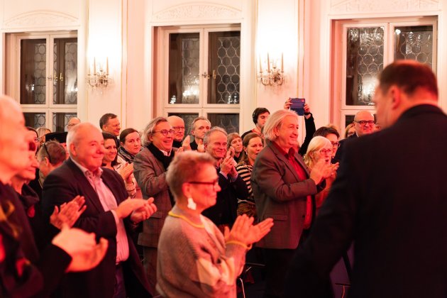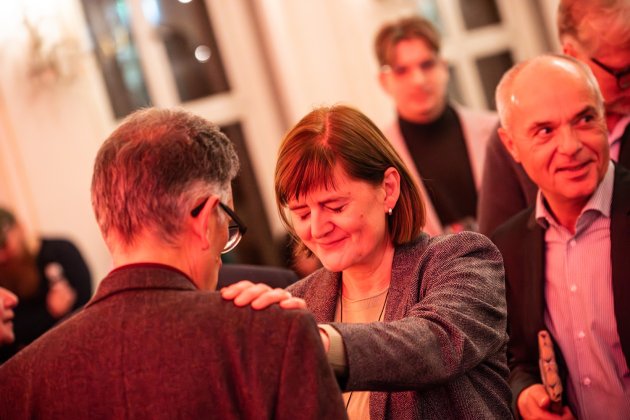 Was soll der Gepriesene nach einem Applaus, der, wie Leif Greinus sich wünscht, „bis in die Dresdner Staatskanzlei zu hören ist“, sagen? Zumal als gewesener Angehöriger einer Berufsgruppe, die, wie Peter Weidhaas einmal meinte, eigentlich „immer in der Zukunft“ lebt? „Vor 526 Jahren, als die Buchmesse zum ersten Mal erwähnt wurde, war ich noch nicht dabei“, meint Zille mit augenzwinkerndem Understatement. Aber auch, um so etwas wie Heldenverklärung gleich im Keim zu ersticken. Er möchte nicht „ich“ sagen, auf dem „wir“ besteht er: „Die Leipziger Buchmesse ist ein Mannschaftswerk von Menschen mit Ideen. Meine Aufgabe war, die zusammenzubinden, weiterzuentwickeln.“ Viele Mitarbeiterinnen und Mitarbeiter aus seinem Team sitzen im Saal; die ein oder andere Träne fließt nun doch, trotz Leif Greinus’ anfänglichen Appell an Frohsinn und Leichtigkeit. „Ich bin ein Leipziger Messekind“, sagt Zille über Zille. Das erste internationale Publikum, dessen der kleine Oliver in der größten DDR der Welt ansichtig wurde, waren die Messegäste daheim bei den Eltern. Als Jugendlicher faszinierte ihn der Charakter der Messe als „gesellschaftliches Ereignis“, in other words: „Es war richtig was los!“ Das war seine Vision für die Buchmesse: Keine „Versammlung von Spezialisten“, sondern: Auf den Putz hauen, ein Ereignis stiften. „Wir haben das als Stadt gemeinsam gewuppt. Wenn sich dieser Geist erhalten lässt, wird es mit der Buchmesse auch in Zukunft gut.“ Die Schlange derer, die sich persönlich bei Oliver Zille bedanken wollen, wird über eine Stunde nicht abreißen. Jazz pluckert dezent aus den Boxen, Gott sei Dank ist auch Gelächter zu hören. Und irgendwann, als es schon gegen Mitternacht geht, kurz Frank Sinatra: I did it my way.