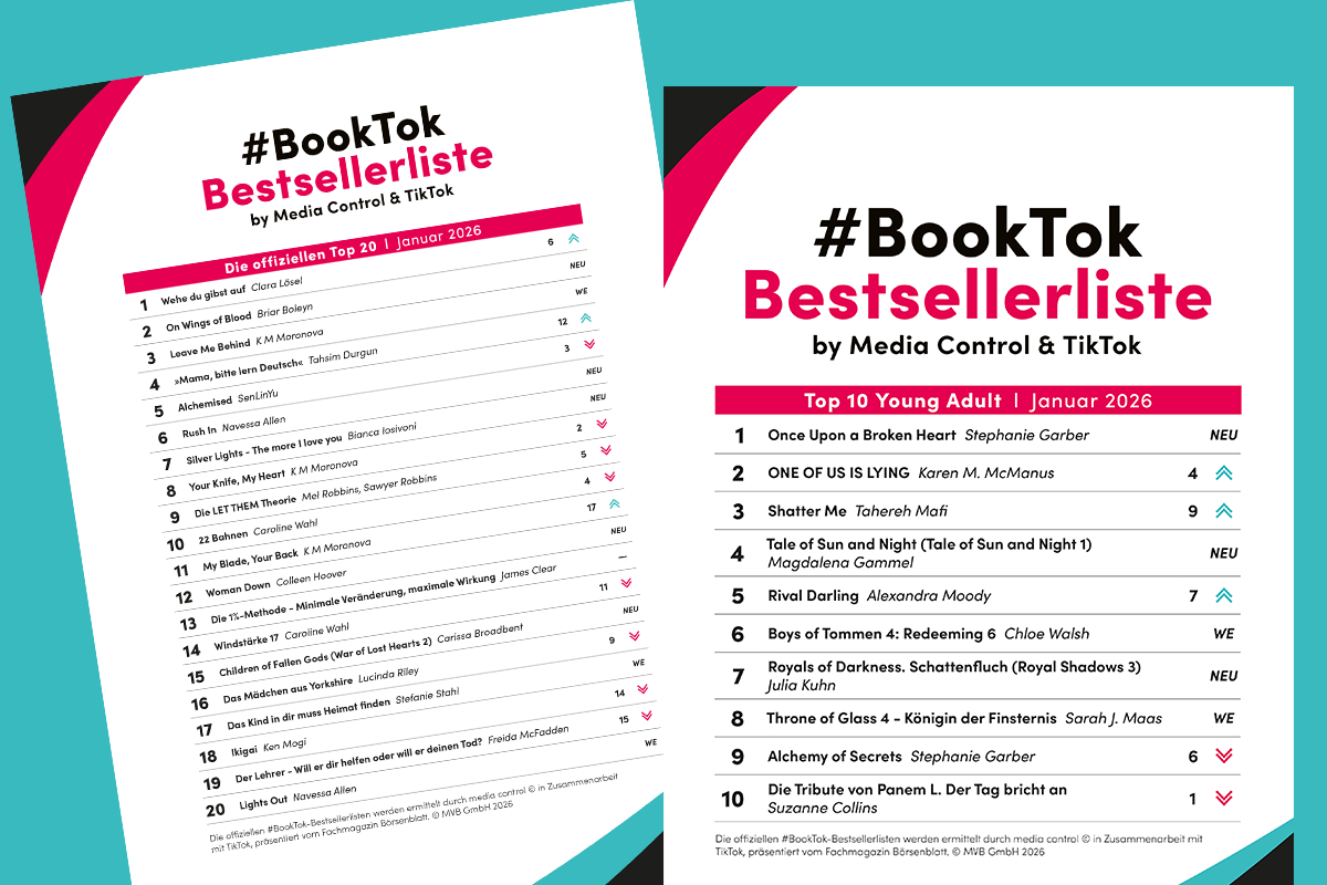 Im vergangenen Dezember war "Wehe du gibst auf" (Now; ET: 8. April 2025 – Hardcover) von Clara Lösel neu auf Platz 6 in der Overall-Liste der BookTok-Charts eingestiegen. Im Januar klettert der Titel nun auf den ersten Platz. Das Mut-Mach-Buch bietet laut Verlag "101 schonungslos ehrliche und tief verletzliche Texte über (Selbst-)Liebe und Schönheitsideale, über Politik und Herzbruch, über Einsamkeit und Hoffnung." Ihre Gedichte handeln also von den großen und kleinen Themen dieser Welt. Innerhalb kürzester Zeit hat sich Clara Lösel mit ihren Poetry-Videos auf Instagram und TikTok eine starke Community aufgebaut. Auch in den 'normalen' Börsenblatt Bestsellerlisten hat der Titel eingeschlagen, belegte in den Jahrescharts 2025 Sachbuch Hardcover Platz 15. In der aktuellen Kalenderwoche 6/2026 steht der Titel, wie schon in der Vorwoche, auf Platz 1 unserer Wochencharts Sachbuch Hardcover. Er ist kreist 32 Wochen in dieser Liste.