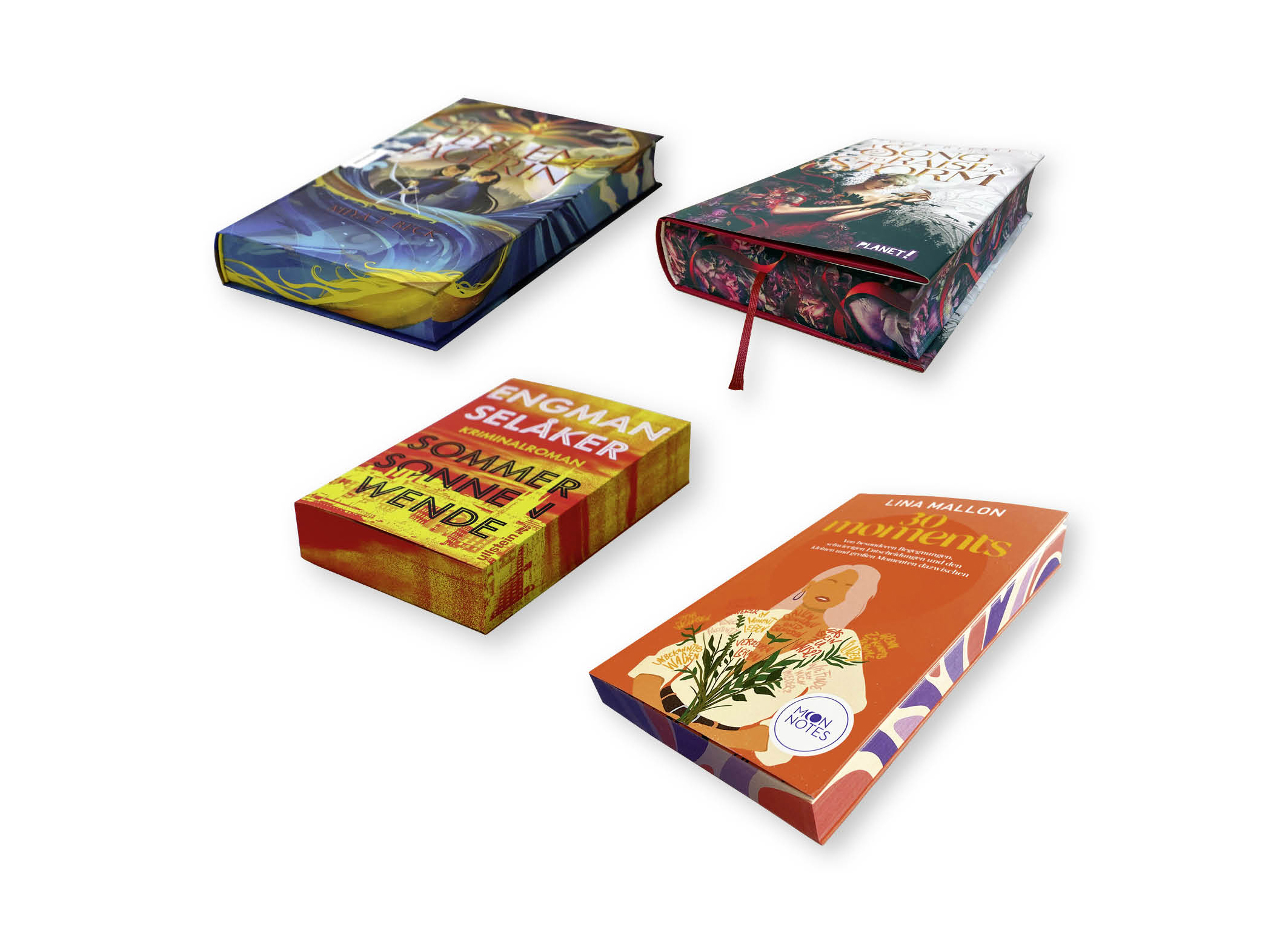 Inmitten des Romance-Farbschnitt- Hypes sieht er einen steigenden Bedarf: »Man muss Druckereien früh beauftragen und genau kalkulieren – denn in der Produktion sind Farbschnitte ein verlangsamender Faktor. Eine Maschine schafft etwa 250 pro Stunde.« Schwierig wird es, wenn 15.000 Vormerker für eine Startauflage von 12.000 Farbschnitt- Exemplaren eingehen. Denn dann kann es passieren, dass einige Abnehmer leer ausgehen. Weil Farbschnitte ihre Zeit brauchen und Zusatzkosten von bis zu einem Euro pro Buch verursachen, wird nicht eben schnell mal nachproduziert. Und ohne Farbschnitt, stellen Buchhändlerinnen fest, möchten Kundinnen das Buch oft nicht mehr haben: »Romance-Nachauflagen ohne Farbschnitt funktionieren eigentlich nur dann, wenn der Titel zu einer erfolgreichen Serie gehört, inhaltlich begeistert und gern empfohlen wird oder von einer Bestsellerautorin geschrieben ist.« Und wie steht es um die Nachhaltigkeit im Farbschnitt? »Das kommt ganz darauf an, welche Farben genutzt werden«, so Zorman. »Die Recyclingfähigkeit der Farbe ist uns sehr wichtig, darüber sind wir in engem Austausch mit unseren Druckdienstleistern. Dies trifft auf die Farbe für den Farbschnitt ebenso zu wie auf die eingesetzte Farbe in der Offsetproduktion.«