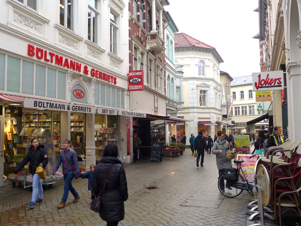Im vergangenen Jahr legte Deutschlands größte Buchhandelskette Thalia ihr 1 400 Quadratmeter großes Ladengeschäft in der Achternstraße still. »Die Umsatzentwicklung der Buchhandlung in der Achternstraße war seit längerer Zeit rückläufig«, sagt Unternehmenssprecherin Julia Hattrup. Als einziger Standort verblieben ist die 2011 eröffnete zweite Filiale in den Schlosshöfen, dem großen Einkaufszentrum mitten in der Stadt. Sie beschäftigt elf Mitarbeiter auf 600 Quadratmetern. Beim Umbau im Frühjahr 2015 wurde die Jugendbuchabteilung vergrößert und der Bereich Belletristik ausgebaut. Weitere Veränderungen seien derzeit am Standort Oldenburg nicht geplant, so Hattrup.
