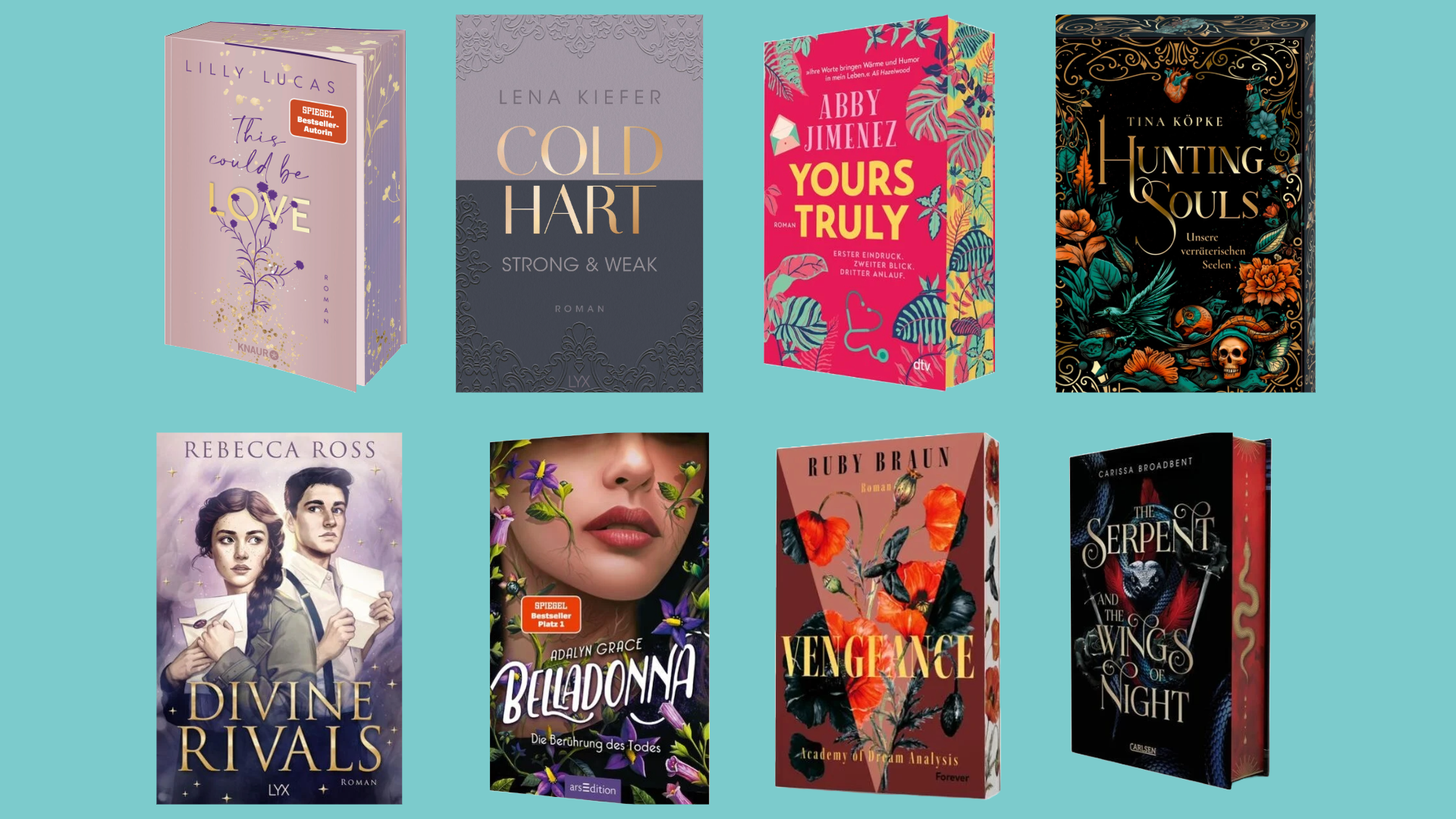 Der Mix aus Romance und Fantasy war schon bei Rebecca Yarros' "Fourth Wing" ein erfolgsversprechendes Element und könnte auch bei neuen Titeln Leser:innen anziehen: "The Serpent and the Wings of Night" von Carissa Broadbent überzeugt die Leser:innen mit magischen High-Fantasy-Elementen, in "Hunting Souls - Unsere verräterischen Seelen" von Tina Köpke wandelt die Protagonistin als Untote in einer Welt mit fantastischen Wesen und auch in Adalyn Grace' "Belladonna" wird es düster-magisch. Ruby Brauns "Vengeance" bietet Dark-Akademia-Atmosphäre, verfeindete Familien und traumwandelnde Protagonist:innen.