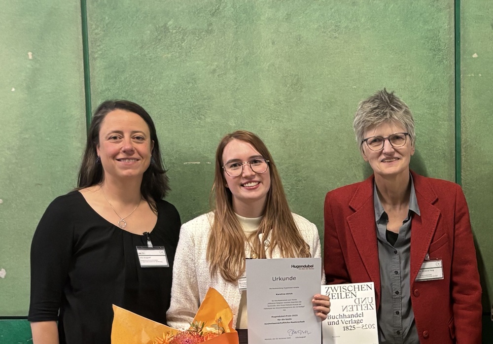 Der vollständige Titel der Arbeit von Karolina Ulrich lautet: "Influenzer-Ratgeber zwischen Expertise und Reichweite: Eine Mixed-Methods-Analyse am Fallbeispiel des Gesundheitssegments des GU-Verlags“. Die Preisverleihung nahm Julia Borghoff, Leitung Warenfluss und Prozesse bei Hugendubel, vor. Als aktives Mitglied der Jury fasst sie stellvertretend zusammen: "Die Arbeit zeichnet sich durch sehr präzise Bearbeitung der zu Beginn gestellten Thesen aus. Stilistisch und methodisch führt uns Karolina Ulrich mit großer Sicherheit und feinem Gespür, wo es nötig ist auch sehr differenziert, durch ihre Analysen."