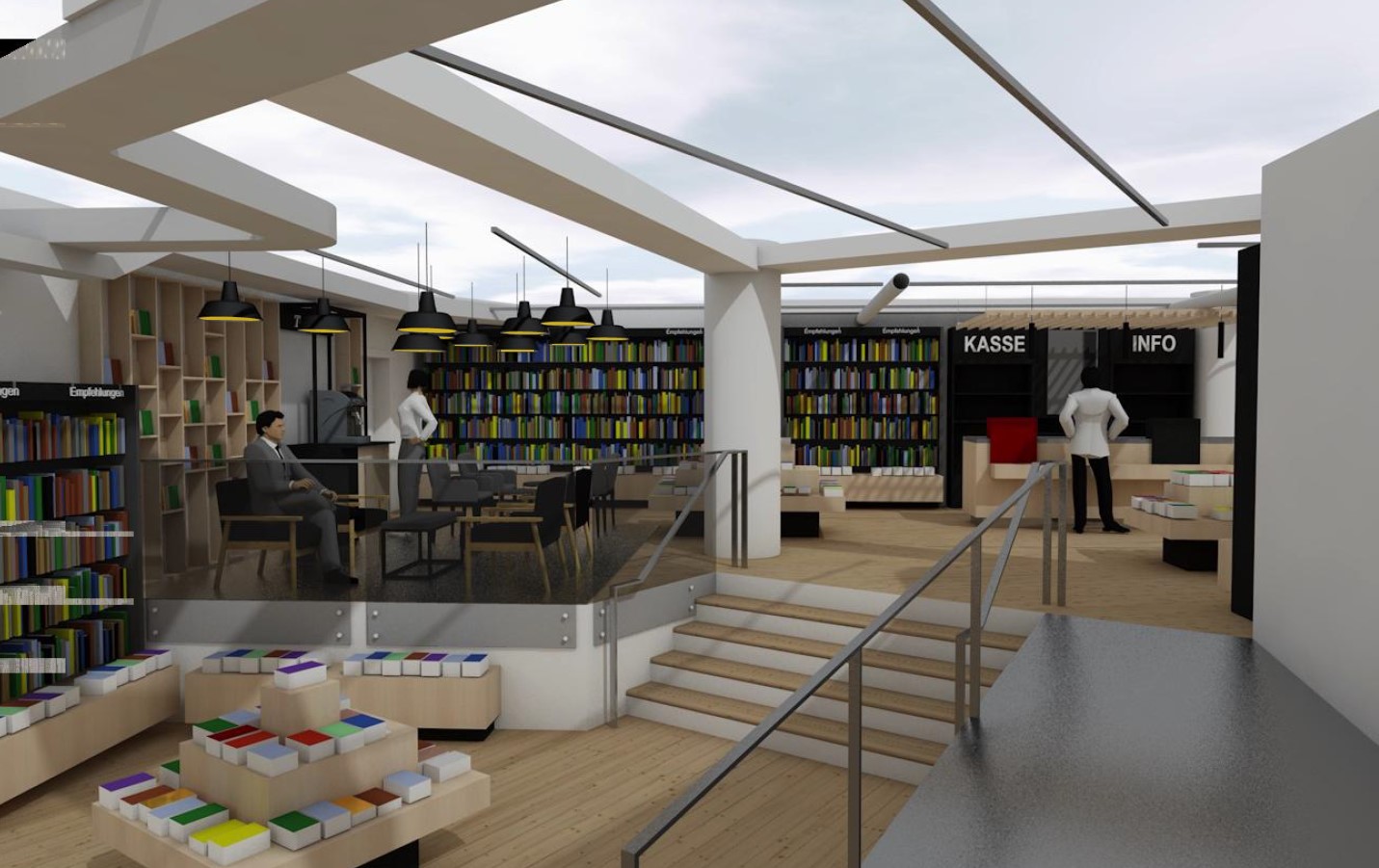 Ab Samstag, den 1. Juni, wartet ‚der neue Hugendubel‘ auf 400 qm mit einer ansprechenden Einrichtung, gemütlicher Sitzlounge und Café-Ecke (Selbstbedienung) auf.